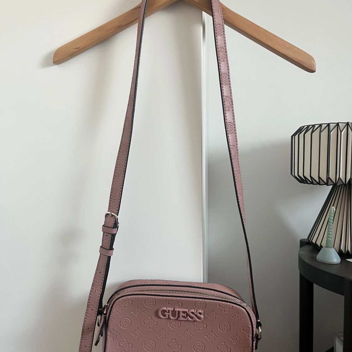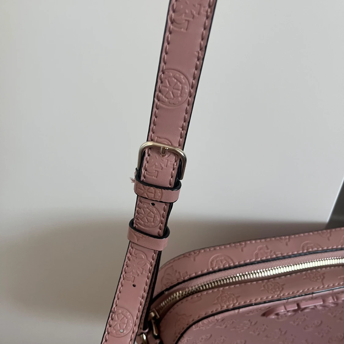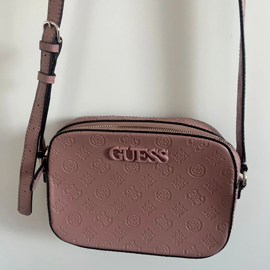 Snygg rosa axelväska från Guess med präglat mönster och justerbar axelrem. Väskan har en dragkedja upptill och flera fack inuti för enkel organisering. Perfekt för att bära dina dagliga nödvändigheter med stil. Superfin färg till vår och sommar.