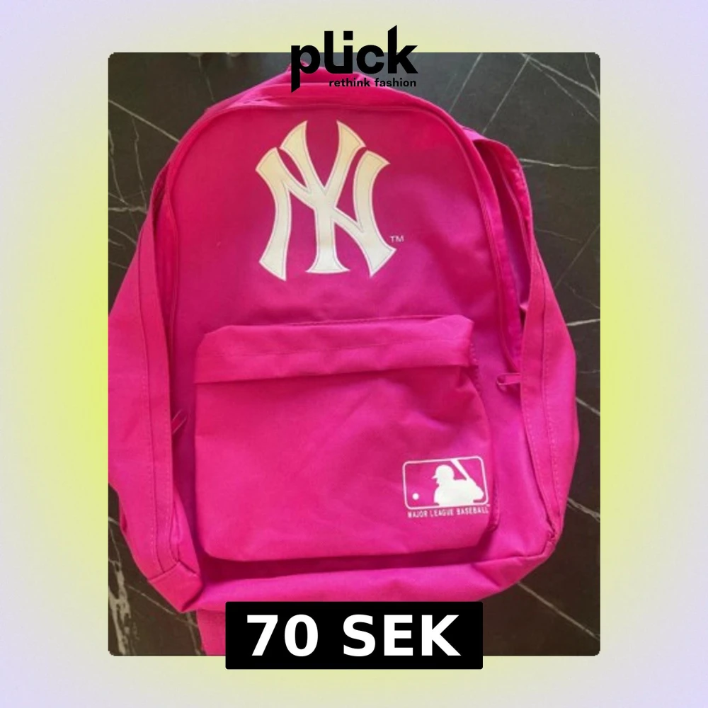 Snygg rosa ryggsäck med stort vitt NY Yankees-logga på framsidan och Major League Baseball-tryck på fickan. Ryggsäcken har justerbara axelremmar, en stor huvudficka med dragkedja och en praktisk ytterficka. Perfekt för att sticka ut med sportig stil. Säljes omgående Aldrig använda Alla är Inplastade. 13st kvar, passa på! - 1st 70kr - 2st 130kr - 3st 200kr VID BESTÄLLNING: VÄLJ VALFRI summa beroende på hur många du vill ha, skickar du förslagsvis med summa av 70kr, vill du alltså bara köp