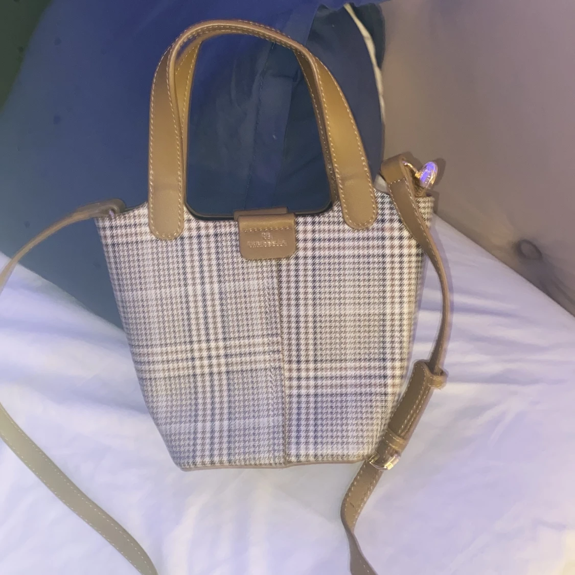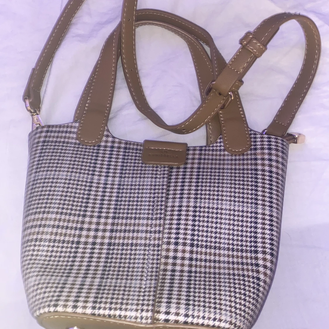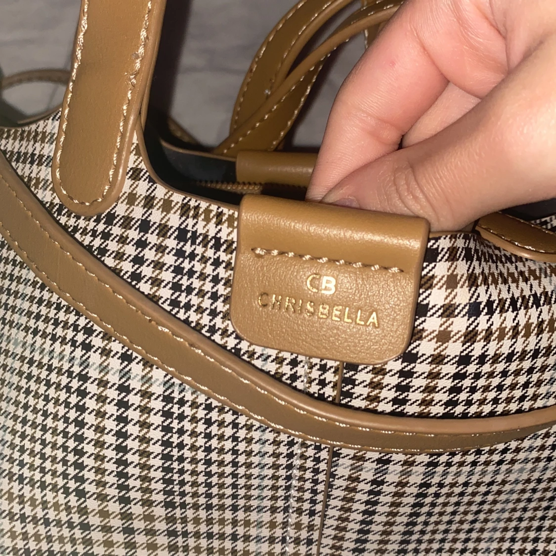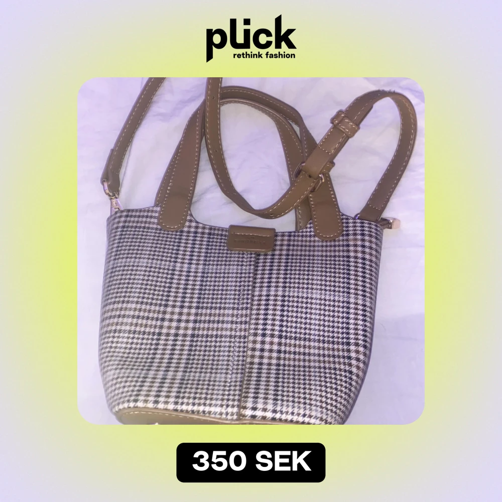 Säljer en snygg rutig axelväska från Chrisbella i mycket bra skick. Väskan har ett klassiskt rutigt mönster i svart och beige med bruna detaljer och axelrem. Perfekt för både vardag och fest!