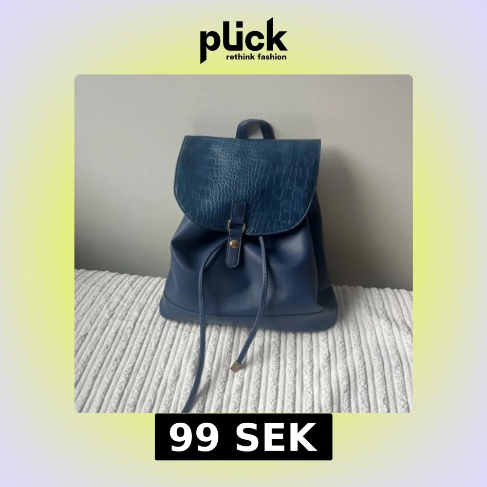 Snygg blå ryggsäck med en krokodilmönstrad klaff och snörning. Väskan har en stilren design med guldfärgade detaljer och en praktisk innerficka. Perfekt för både vardag och utflykter.