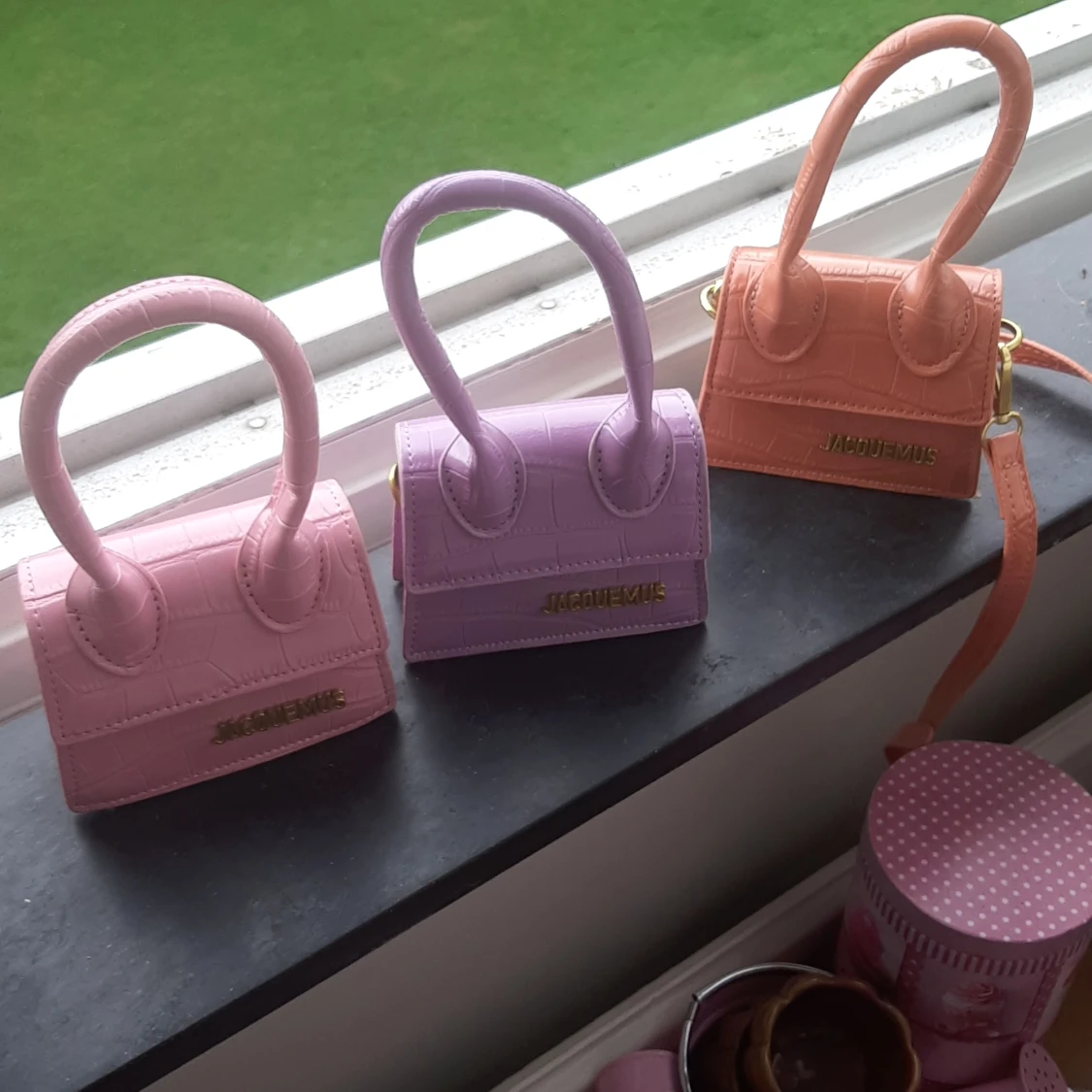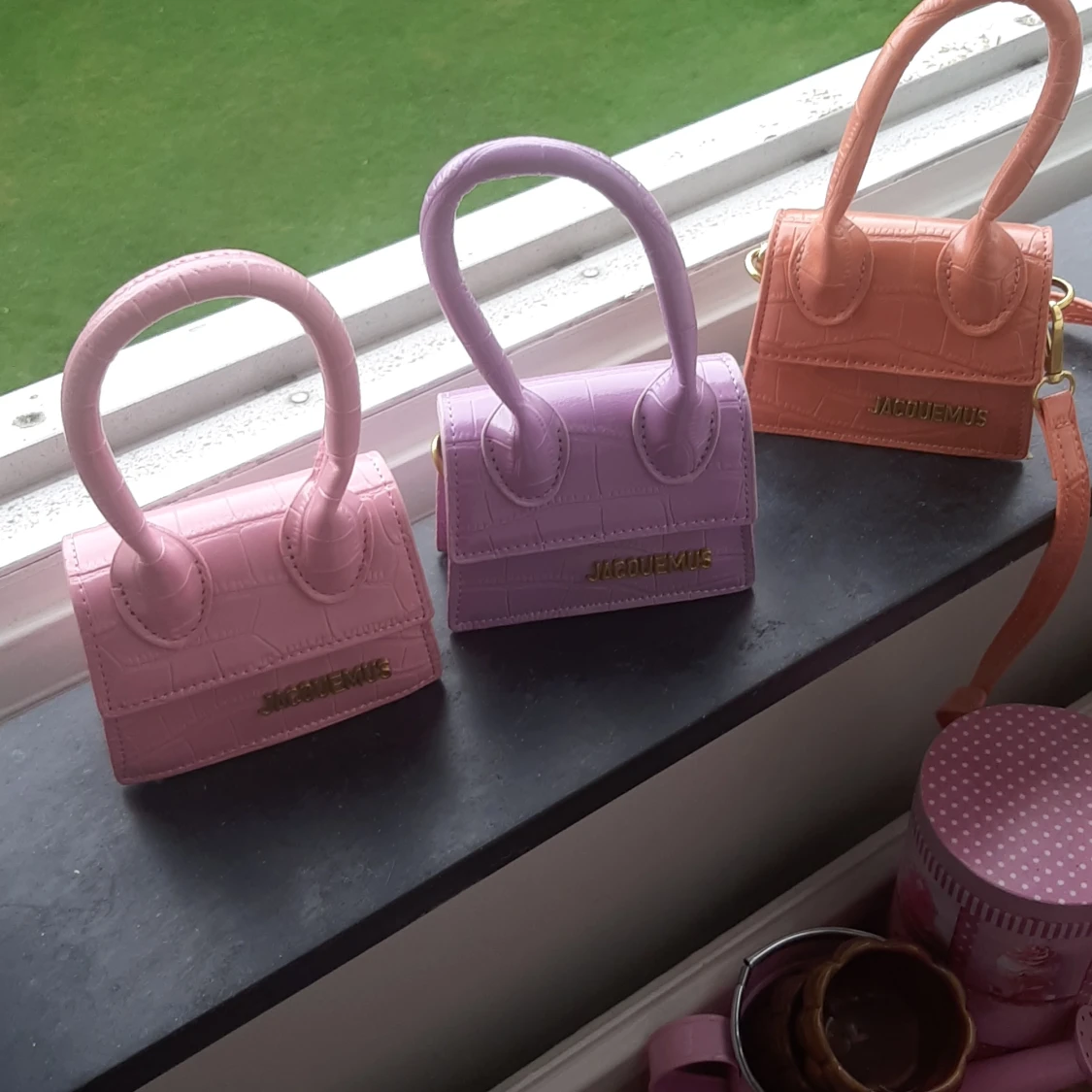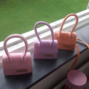Tre nya äkta mini JACQUEMUS Väskor! 1 rosa 1 lila och 1 orange väska med axelrem ! Superfina men säljer för inte min stil ! 1500 kr / väska + önskad frakt