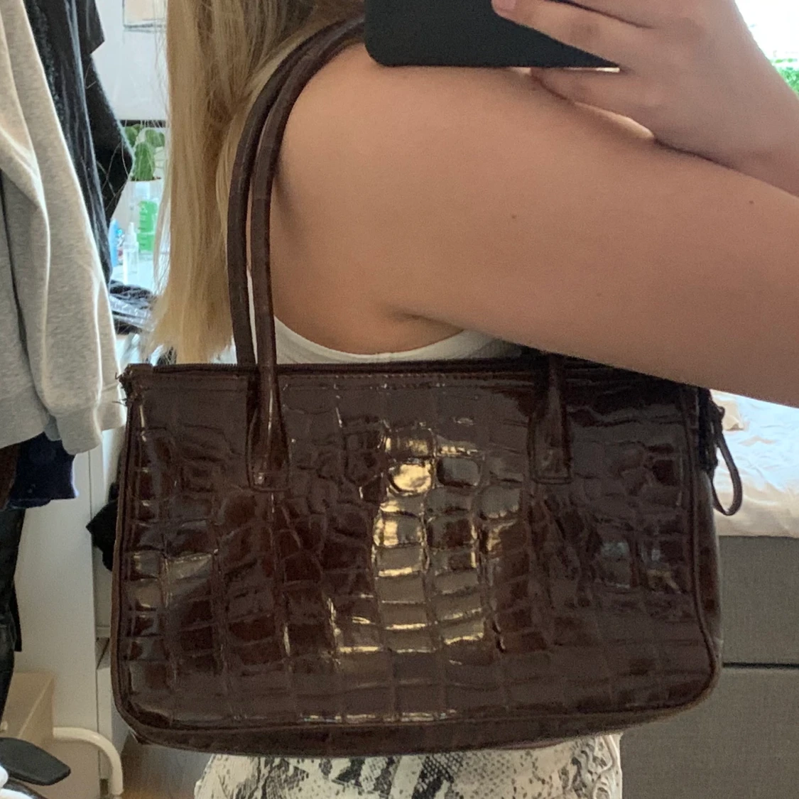 En superfin brun handväska köpt på en vintage butik på Öland förra hösten. Den har en dragkedja upp till och inuti finns de ett stort fack man kan stänga och sen ett mindre. Den kostade 100kr och är i ett jättebra skick. Denna är heller aldirg använd då jag inte tycker om handväskor för det inte är min stil. Köparen står för frakten och det ingår inte i priset. ☺️❤️