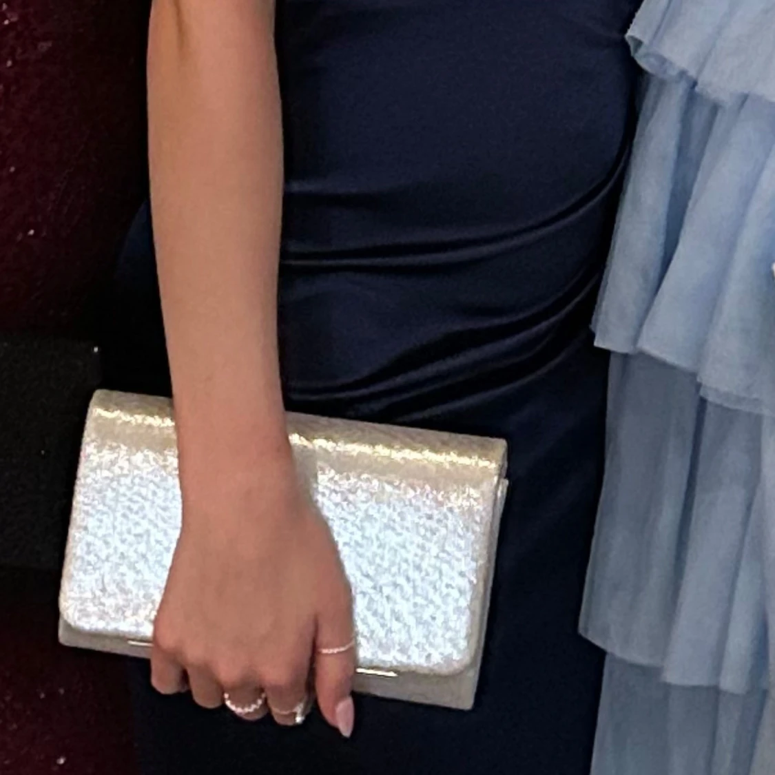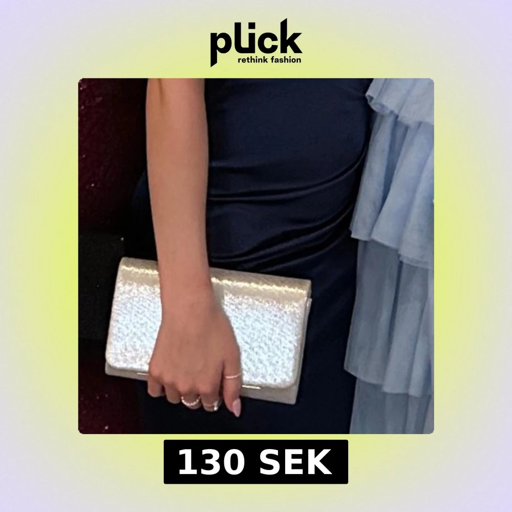 Säljer silvrig kuvertväska. Köpte begagnad och sedan använt den en gång till balen så i fint skick. Finns kjeda till oxå