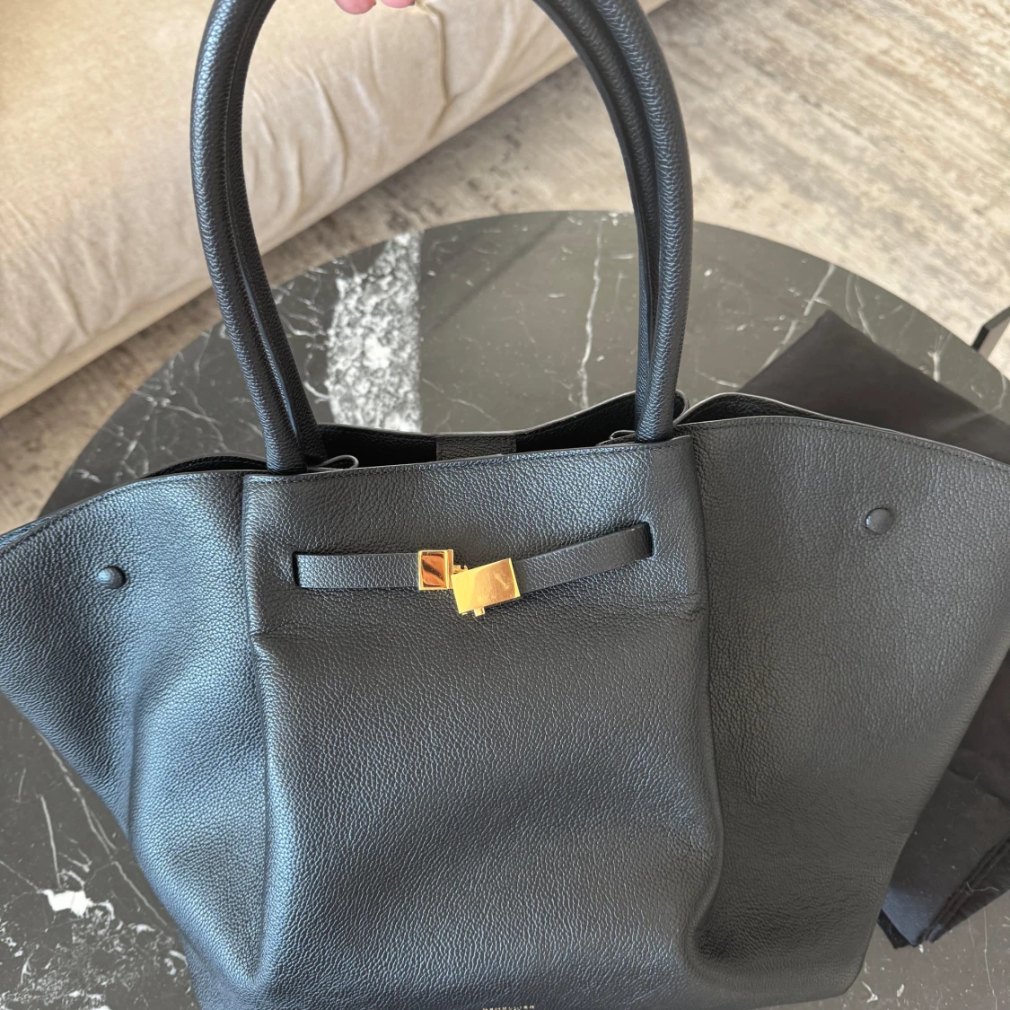 New York har en modern men tidlös siluett, skuren av hållbara material med vår distinkta bältesdetalj. De långa topphandtagen svänger lätt över axeln eller kan öglas över armkroken. Essentials är säkert säkrade i en rymlig bomullsfodrad insida med flera fickor, stängda med en central magnet och två tryckknappar på sidorna. New York är den perfekta dag-nattväskan inspirerad av vår kärlek till staden som aldrig sover. Inredning: Huvudfack med magnetisk stängning lämplig för A4-filer eller bärbar