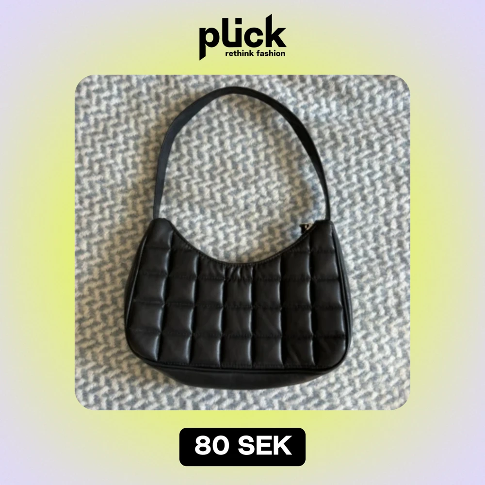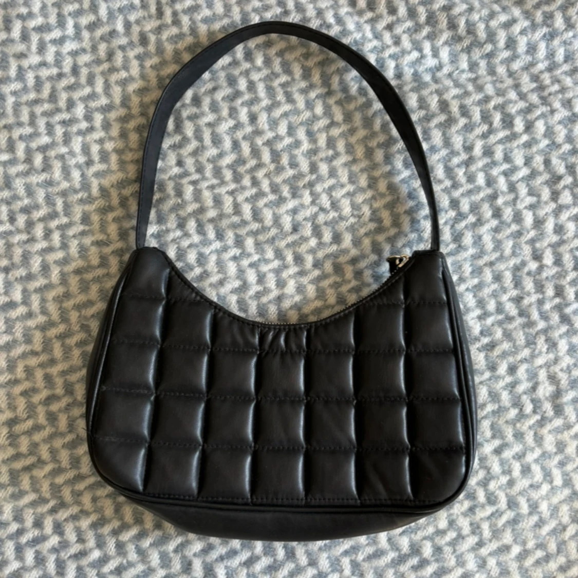 Svart väska i skinnimmitation. Använd 1 gång, skick som ny. L: 24. H: 15. B: 5