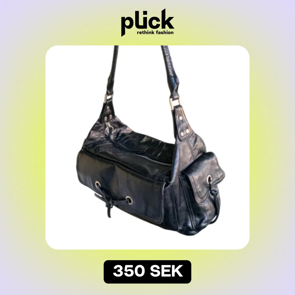 Säljer en snygg svart axelväska. Den har en cool design med dragkedja och små fickor på sidorna. Den har även innerfickor. (Notera att det finns en liten skada på en av innerfickorna men som går att laga) det är inget som syns utifrån❤️