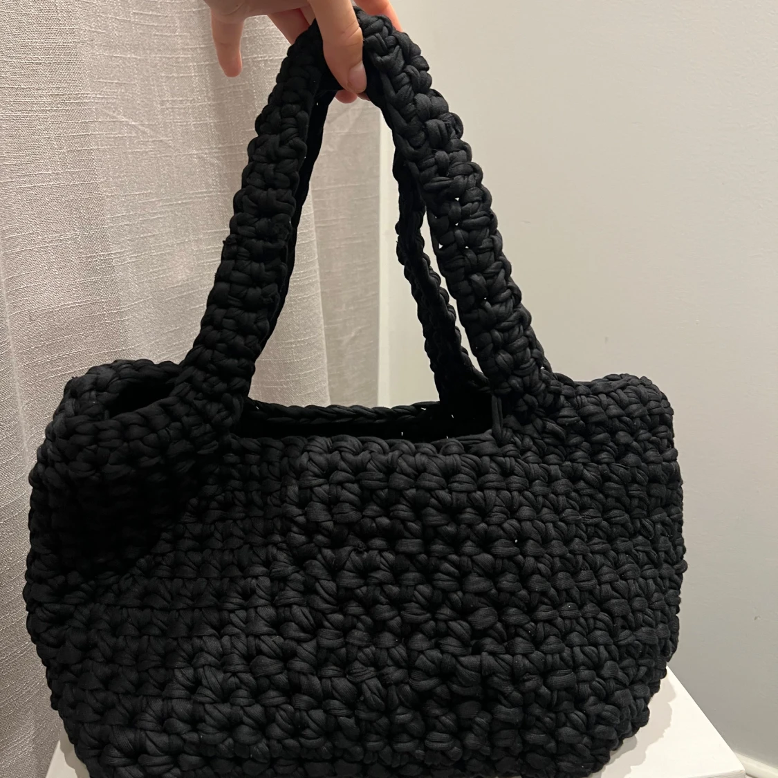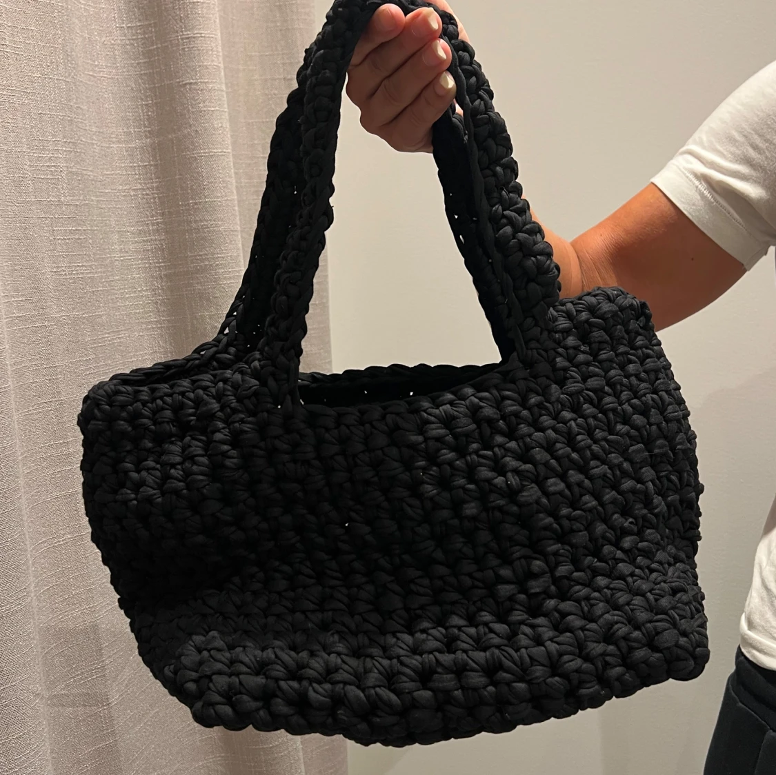 Säljer en svart handväska med handtag, kan beställas i andra färger samt storlekar. Väskan kan väljas att komma med stängning (knapp) eller utan. Samt om man som på denna vill ha två handtag eller endast ett axelrems handtag😊