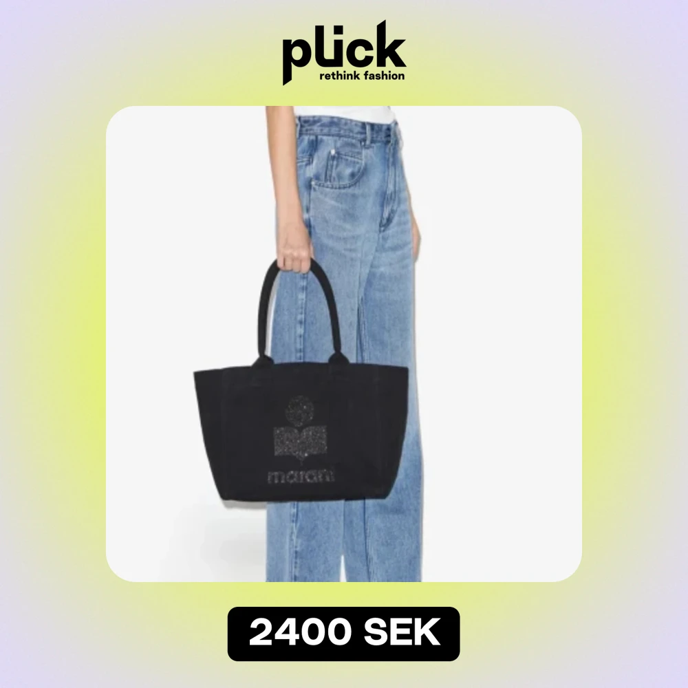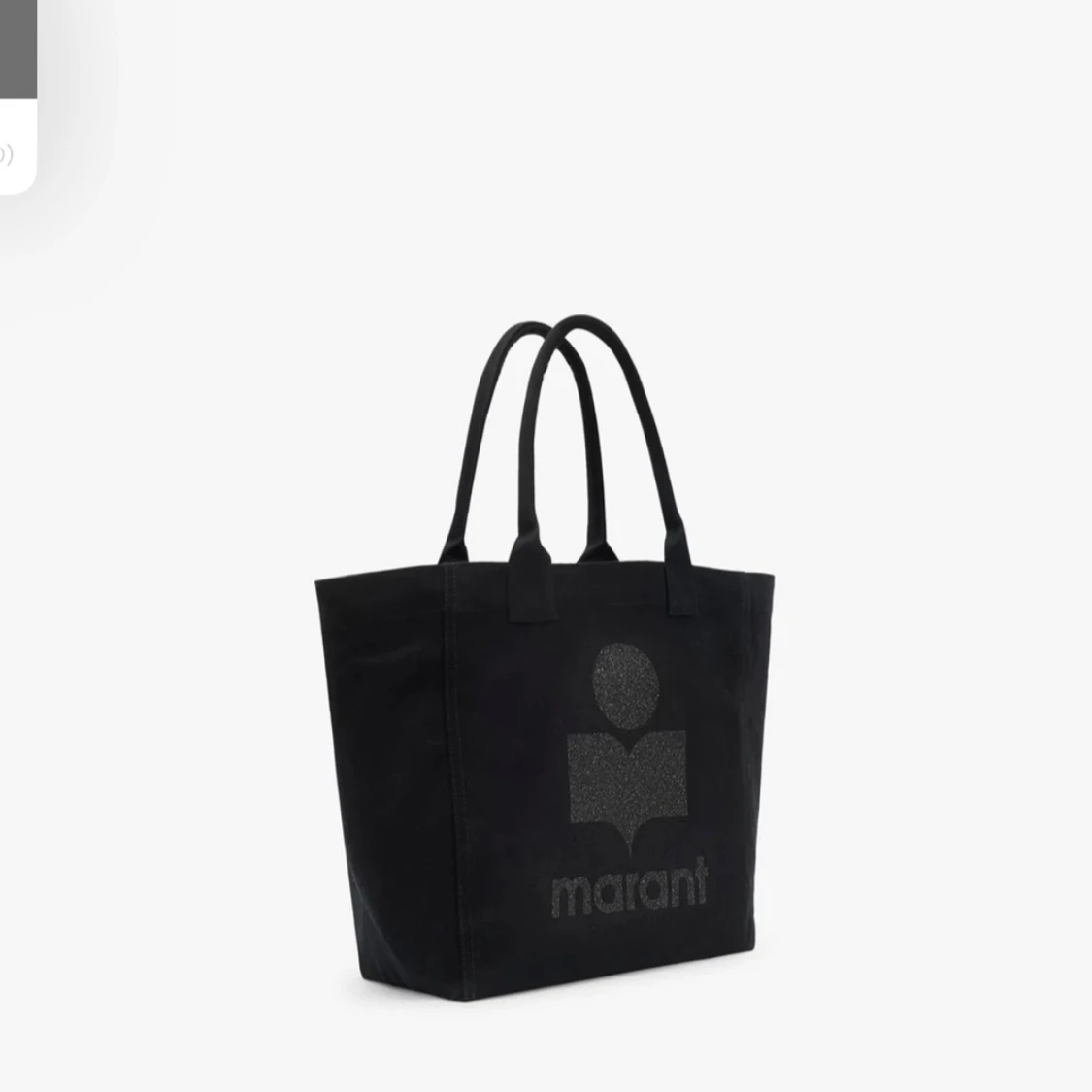 Snygg och stilren svart tote bag från Marant. Väskan har två handtag och ett glittrigt logotyptryck på framsidan. Perfekt för en dag på stan eller som en chic vardagsväska till skolan eller jobbet!