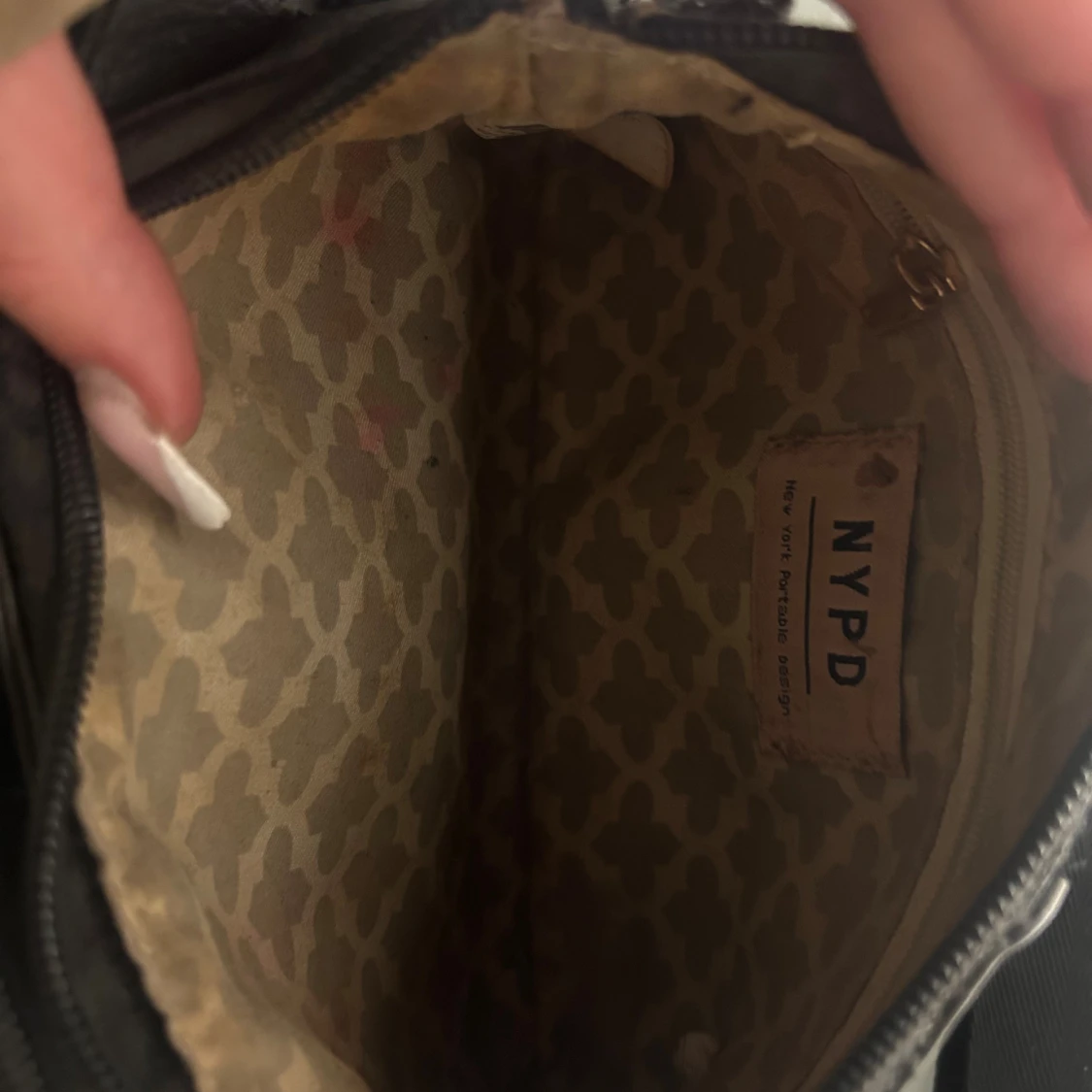 Svart axelväska i skinn från märket NYPD med avtagbar kedja❤️i ena facket förekommer det lite rosa färg som inte går bort men ör verkligen inte synligt❤️