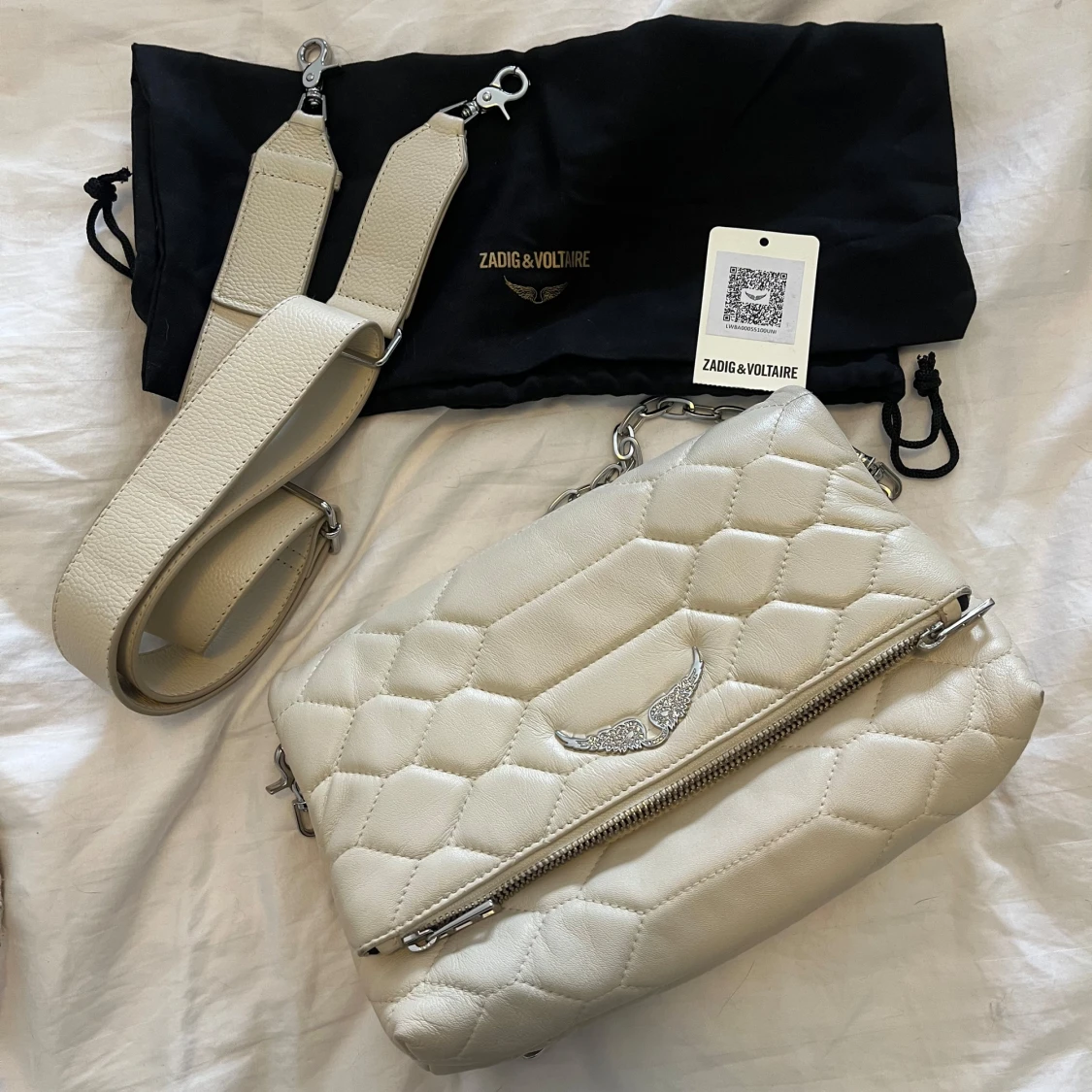 Säljer min fina Zadig Rocky väska. Den största modellen med tre olika fack vilket gör att den rymmer mycket. Nypris ligger på 6000 kr. Är i mycket fint skick, inte använd alls mycket. Säljer pga att den inte kommer till så stor användning då jag har andra väskor jag väljer över denna. Perfekt sommarväska! Kommer med både ett kortare kedjeband och ett bredare crossbody band samt dustbag. Bara att skriva vid frågor eller fler bilder!💗