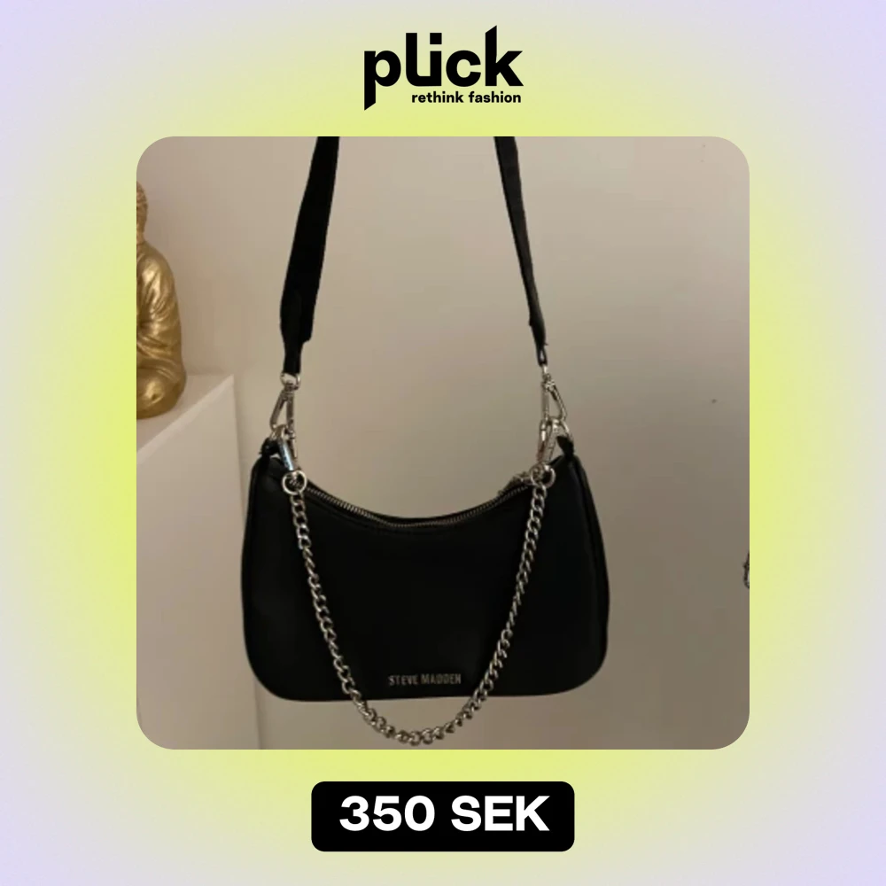 svart steve madden väska köpt från zalando för 1000. Den är använd lite men ser helt ny ut, inga skador eller så. Kedjan och lilla väskan är avtagbar