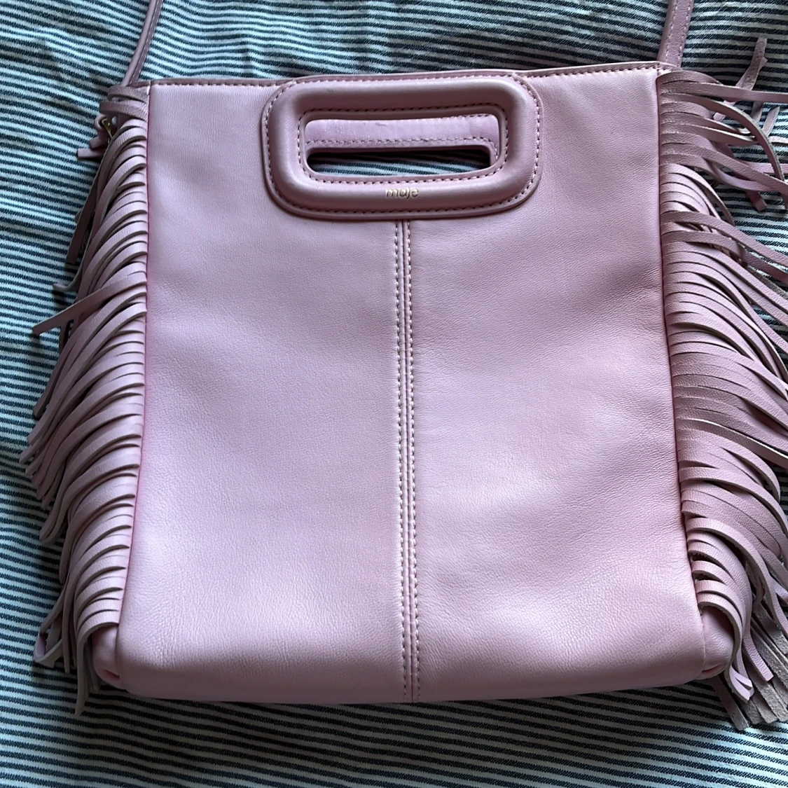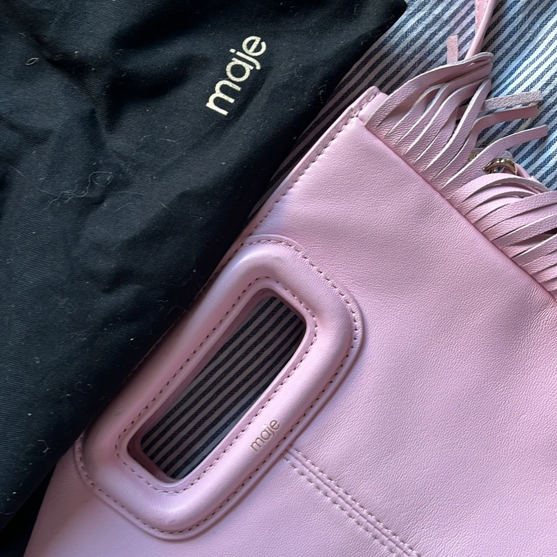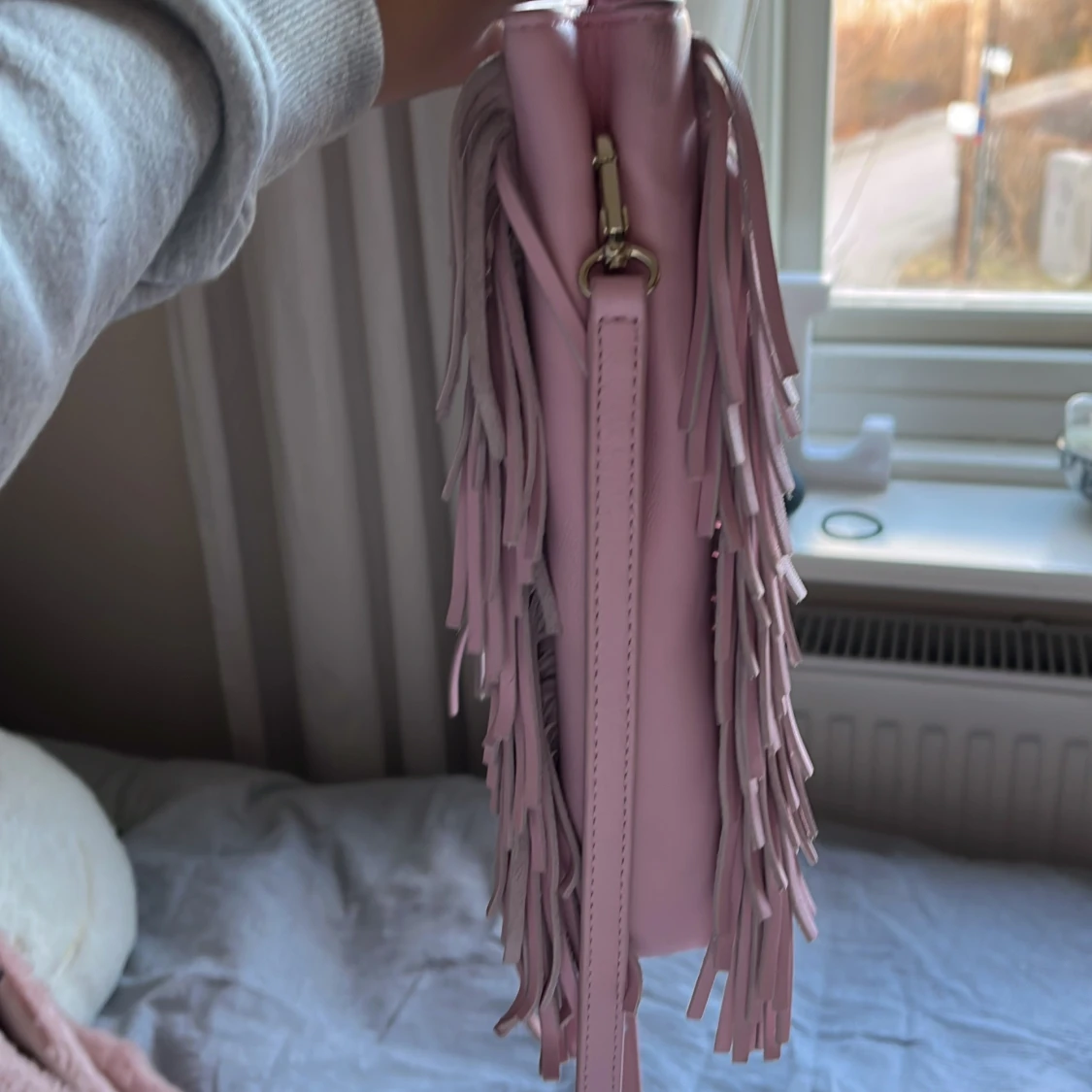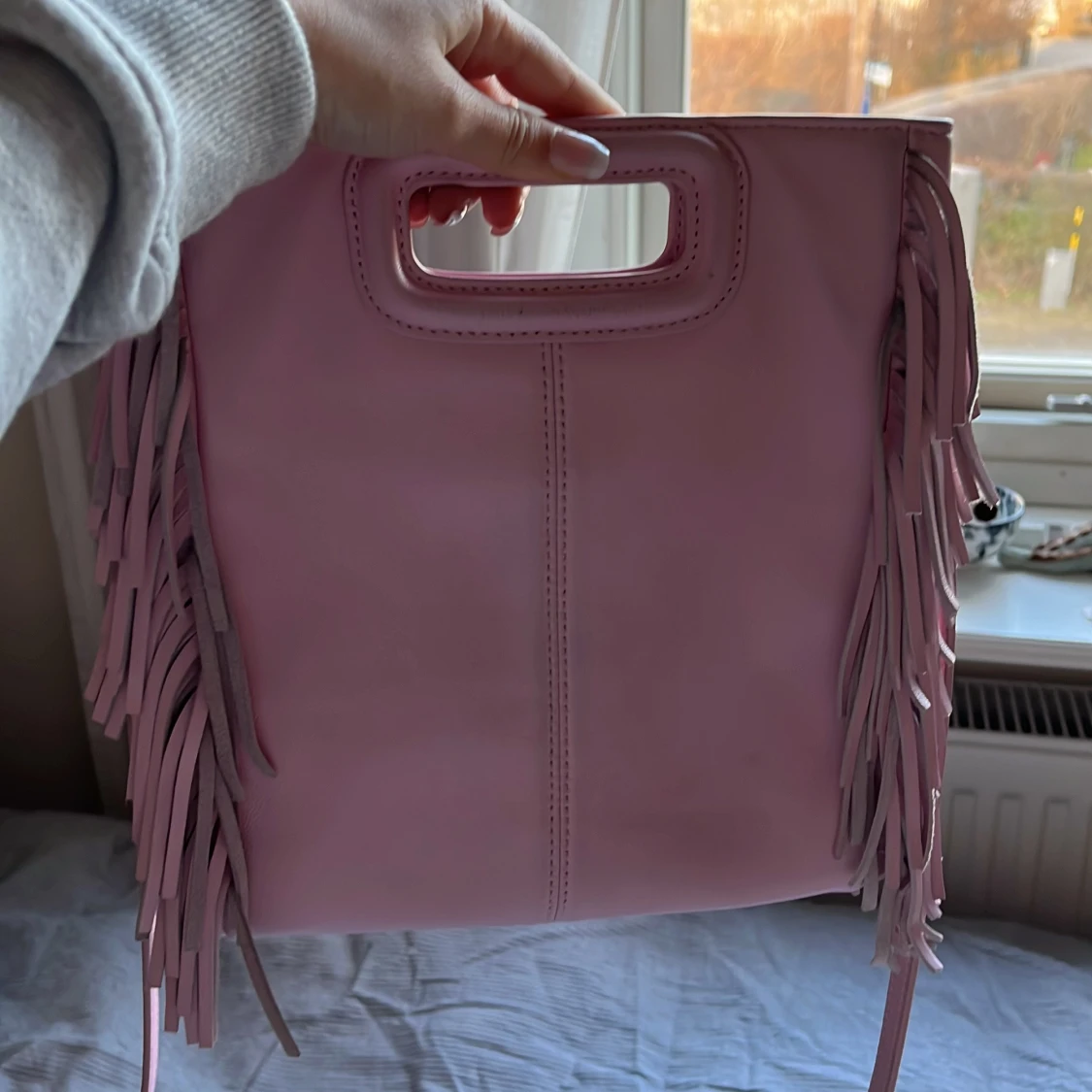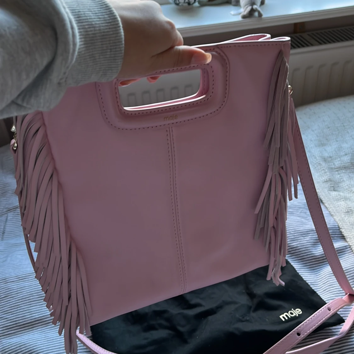 Säljer en snygg rosa axelväska från Maje med coola fransdetaljer på sidorna. Väskan har ett praktiskt handtag och en justerbar axelrem. Perfekt för att ge din outfit en extra touch!den är inte använd så mycket har tagit hand om den riktigt bra🥰