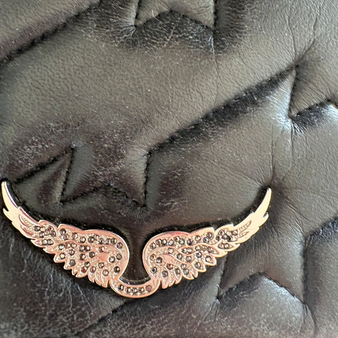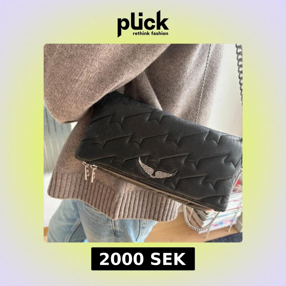 Snygg svart axelväska i quiltat skinn med blixtlås och silverfärgad kedja från Zadig & Voltaire. Väskan har ett coolt blixtmönster. Perfekt storlek för det viktigaste och ger en edgy vibe till din outfit. Supercool och säljs inte längre ❤️skriv för fler bilder och bild på kvitto!