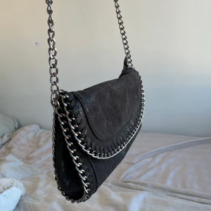 Super fin lite glansig/skimrande väska. Köpt för flera år sedan men nästan aldrig använd. Väldigt fint skick, på första bilden ser det ut som det är rost på kedjan men det finns inget sådant på hela väskan. Flera fack inuti.