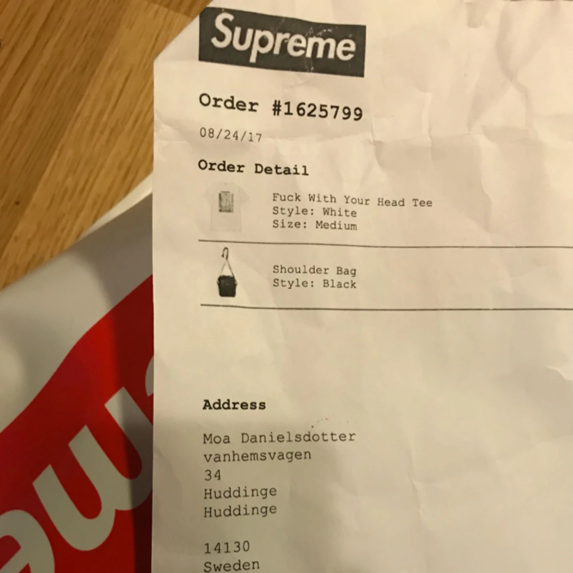 Ny oanvänd supremeväska, lappar kvar och kvitto finns.