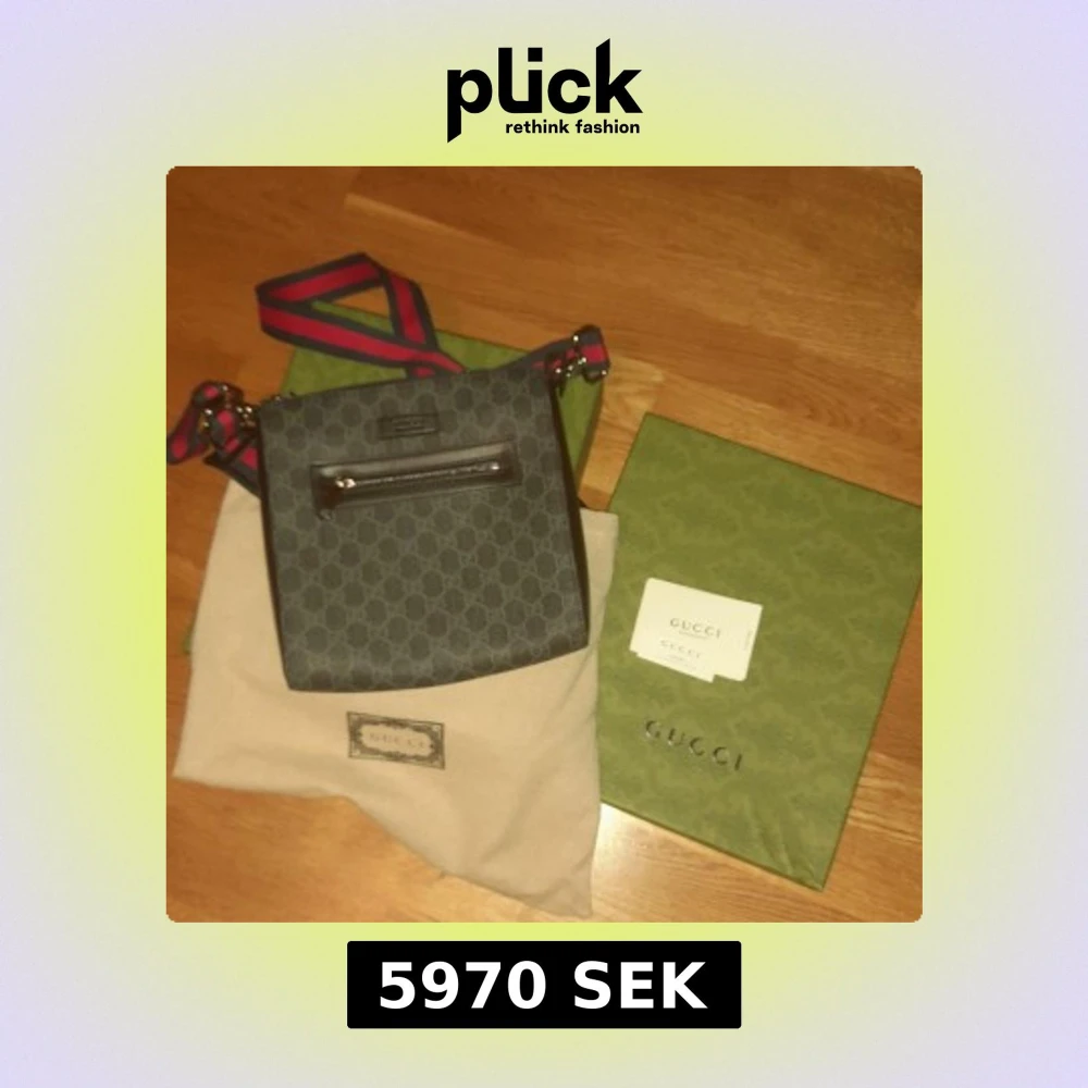 Snygg svart axelväska från Gucci med klassiskt mönster och en justerbar axelrem i rött och blått. Väskan har en praktisk dragkedja framtill och är perfekt för att bära med sig det viktigaste. Kommer med originalförpackning och certifikat. Helt oanvänd