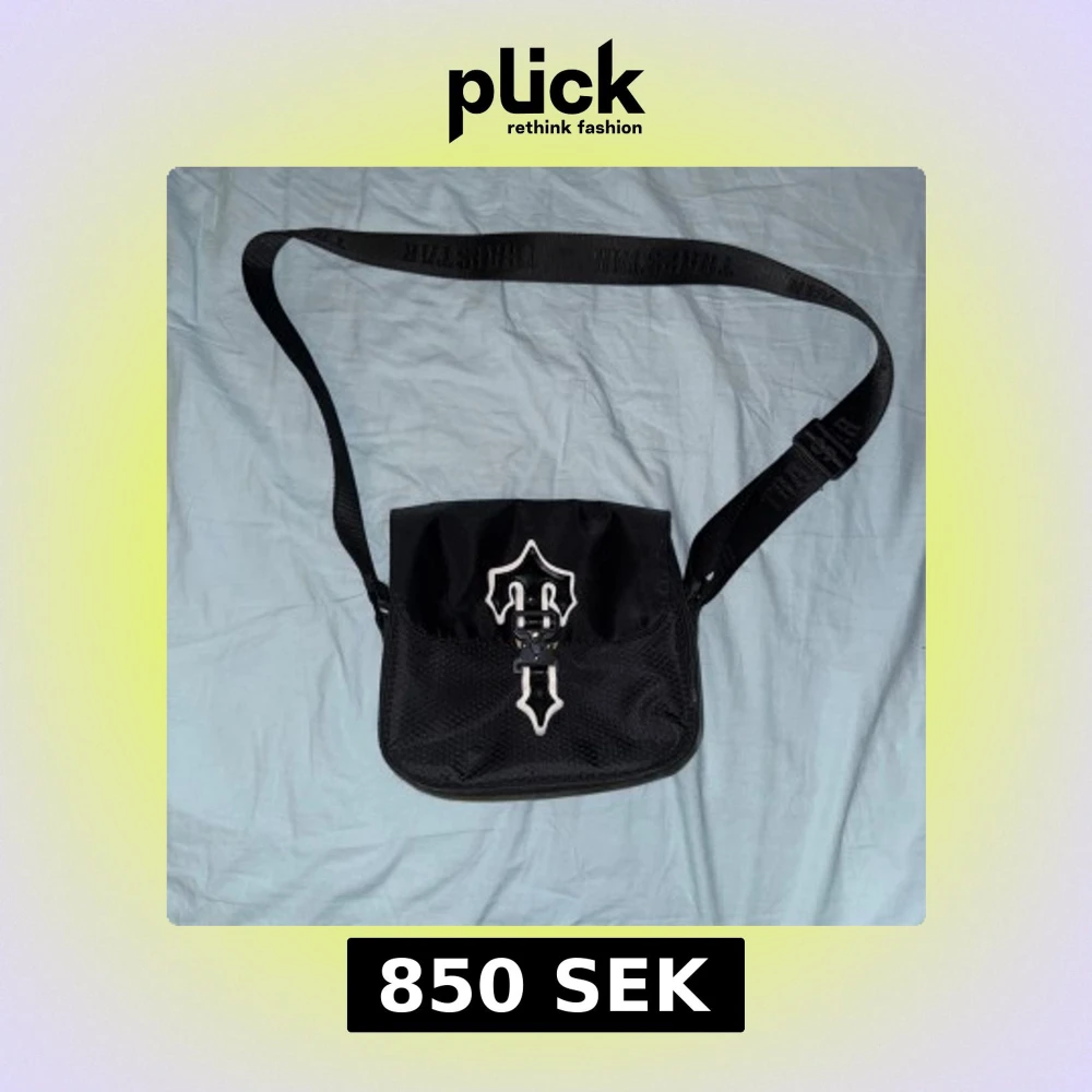 Svart axelväska från trapstar med justerbar rem där loggan är invävd. Väskan har ett lock med unik vit detalj och spänne framtill, samt meshficka på framsidan. Tillverkad i slitstark syntet med dragkedja under locket. Perfekt för att bära det viktigaste. Pris kan diskuteras