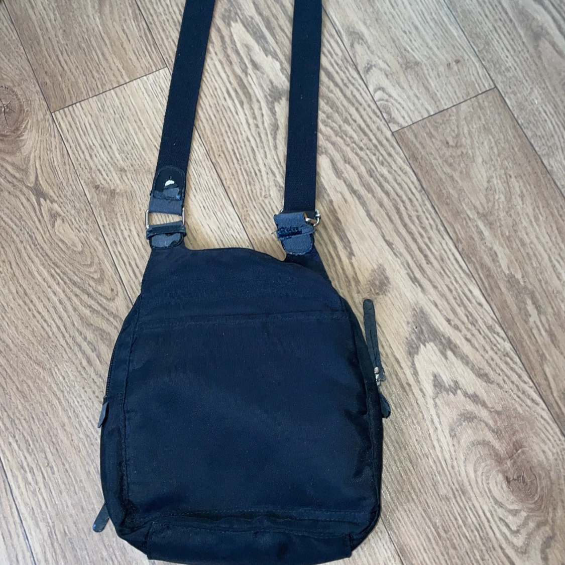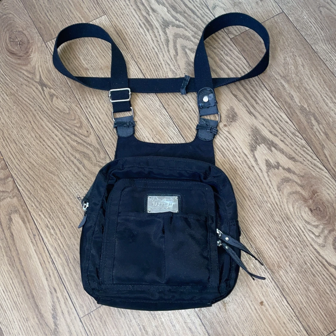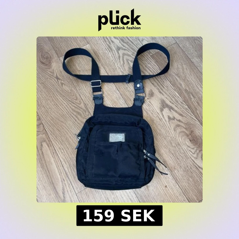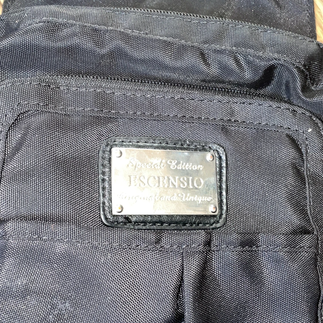Säljer en svart axelväska från Jescinsio med justerbara remmar och flera dragkedjefickor. Väskan har en metallplatta med logotyp på framsidan och är perfekt för att bära dina dagliga nödvändigheter. Enkel och stilren design som passar till många tillfällen.