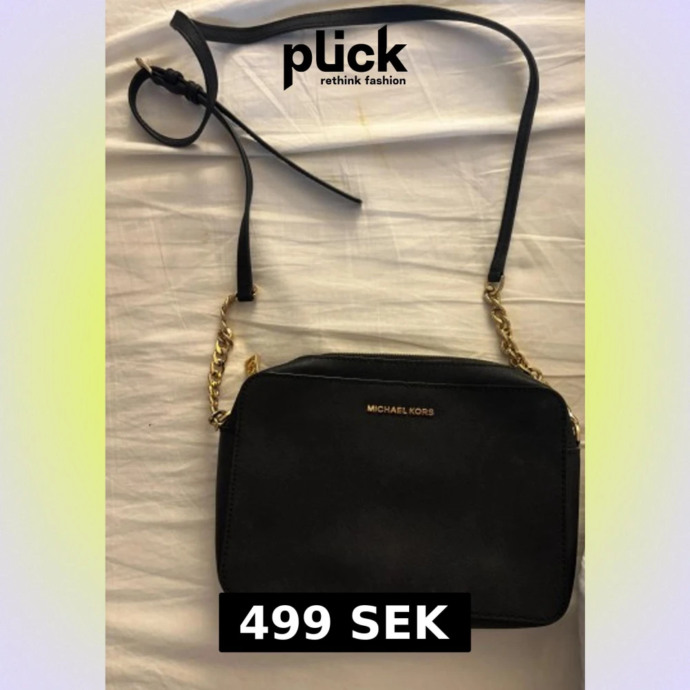 Stilren svart axelväska från Michael Kors med guldfärgade kedjedetaljer och justerbar rem. Väskan är tillverkad i skinn och har en enkel, rektangulär form med diskret logga framtill. Perfekt för dig som vill ha en klassisk och snygg accessoar.