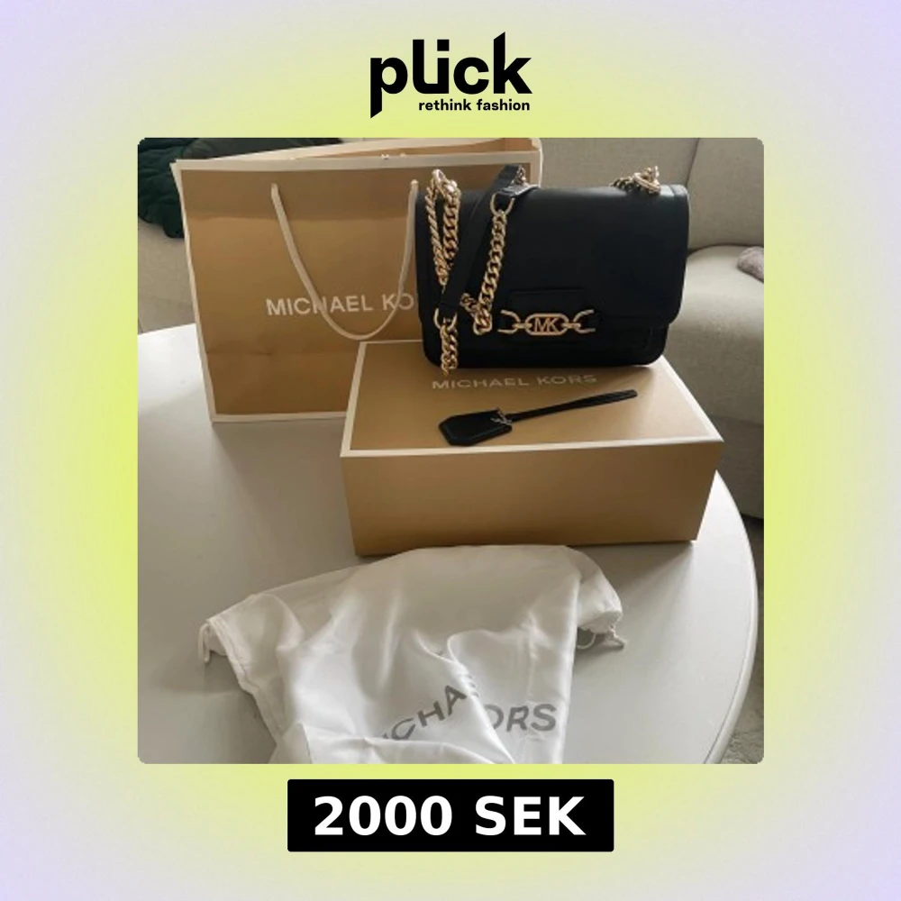 Snygg svart axelväska från Michael Kors med guldfärgade kedjedetaljer och logotyp. Väskan har en elegant design och är perfekt för att lyfta din stil. Den kommer med originalförpackning och dammpåse. Nypris på väskan är 3.300 kr