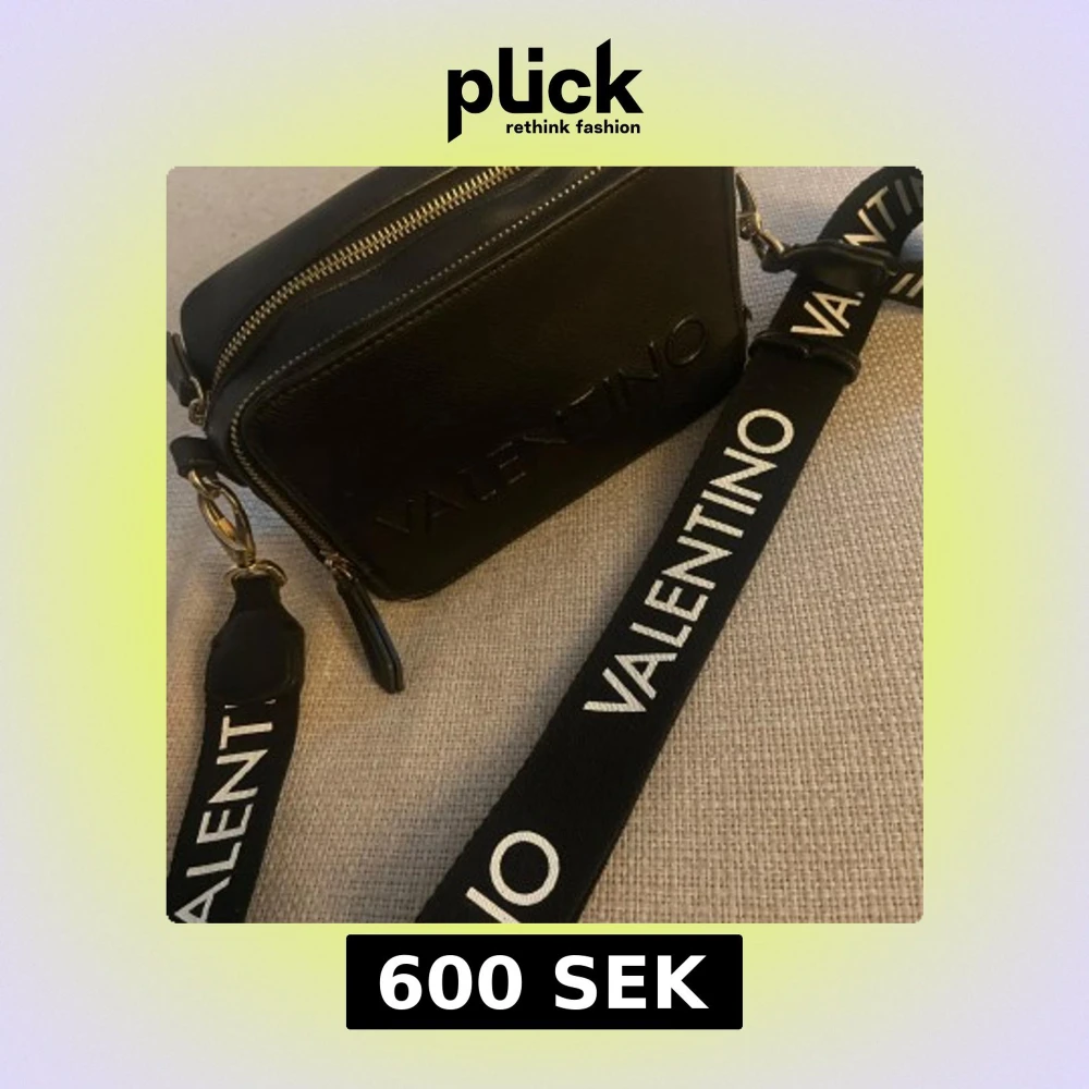 Snygg svart axelväska från Valentino med justerbar axelrem och logotyp i relief. Väskan har två dragkedjor.
