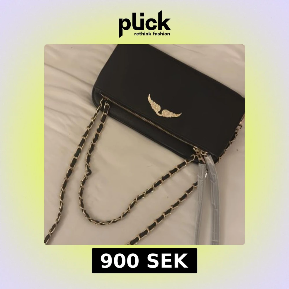 Snygg svart axelväska från Zadig & Voltaire (vet ej om äkta köpt i Vietnam för 1000 kr ) gulddetaljer och kedjerem. Väskan har en elegant vingdetalj på framsidan och en praktisk dragkedja på baksidan. Perfekt för att ge din outfit en stilfull touch.