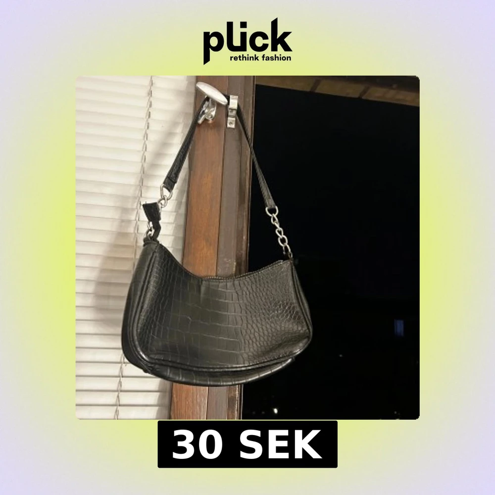Snygg svart axelväska med croco-mönstrad yta och silvriga kedjedetaljer på axelremmen. Väskan har en klassisk bågform och stängs med dragkedja. Perfekt för dig som vill ha en trendig och stilren accessoar till din outfit.