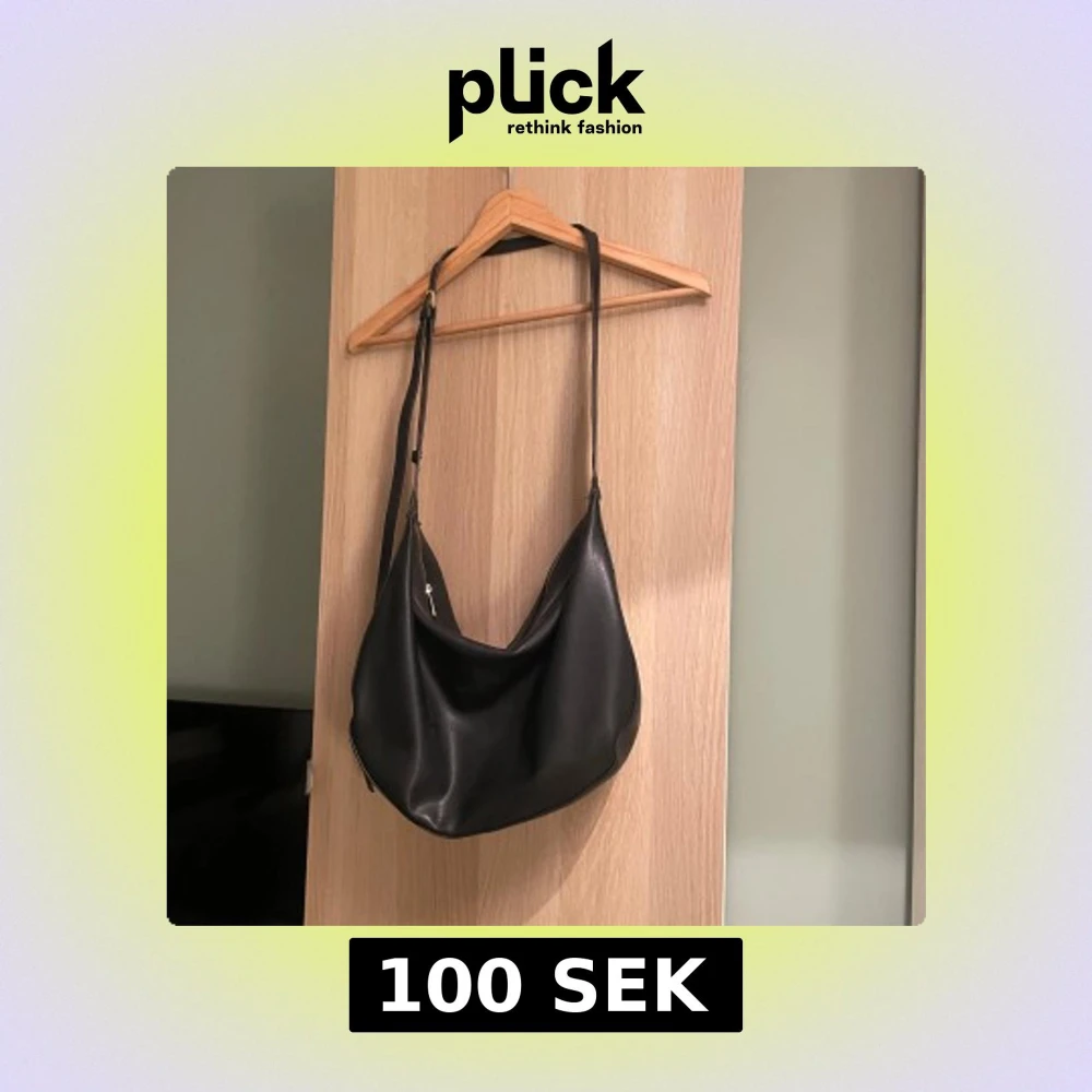 Säljer en stilren svart axelväska i mjukt skinn med justerbart axelband och dragkedja upptill. Väskan har en slouchy, avslappnad form och passar perfekt för dig som vill ha en enkel men snygg accessoar till vardagslooken.