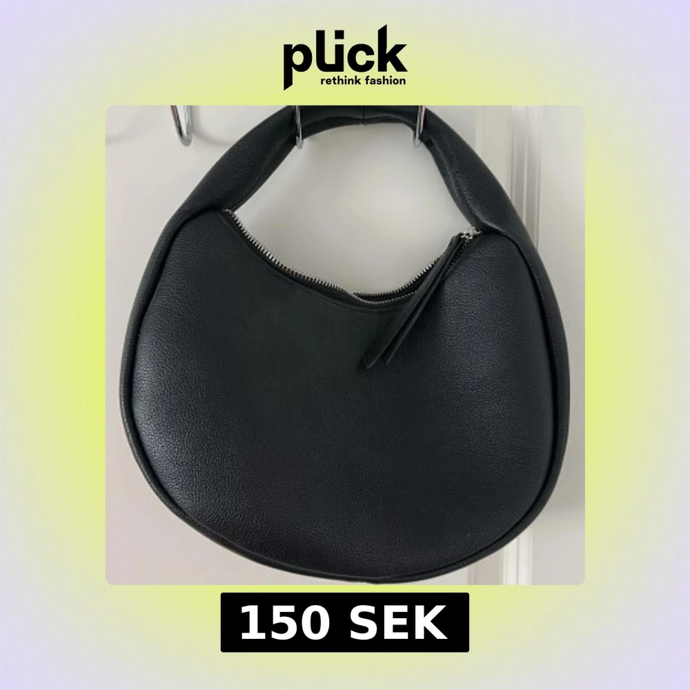 Stilren svart axelväska i rundad form med dragkedja upptill. Väskan har en mjuk struktur och är tillverkad i skinnimitation. Perfekt för dig som vill ha en enkel men trendig accessoar till vardagslooken.