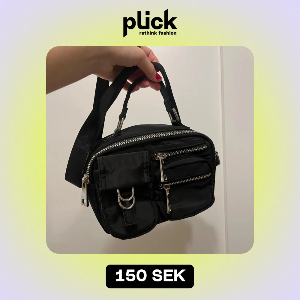 Säljer en snygg svart axelväska. Den har flera praktiska dragkedjor och en justerbar axelrem. Perfekt för vardagsbruk eller en utekväll. Väskan är i mycket bra skick och har en cool, modern stil.