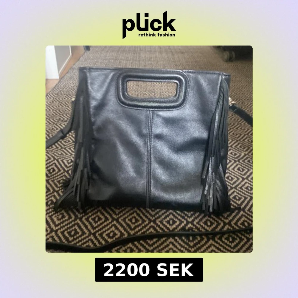 Snygg svart axelväska i skinn från Maje med fransar på sidorna och ett stilrent handtag upptill. Väskan har en rektangulär form och avtagbar axelrem. Perfekt för dig som vill ha en cool accessoar med lite edge.☀️