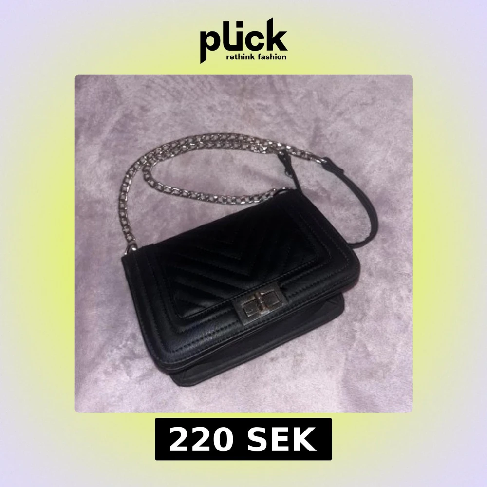 Säljer en svart axelväska med quiltat mönster och kedjerem. Väskan har ett snyggt spänne framtill, är rymlig med en liten ficka innnuti och designnen passar till många tillfällen. Säljs för 180kr+frakt