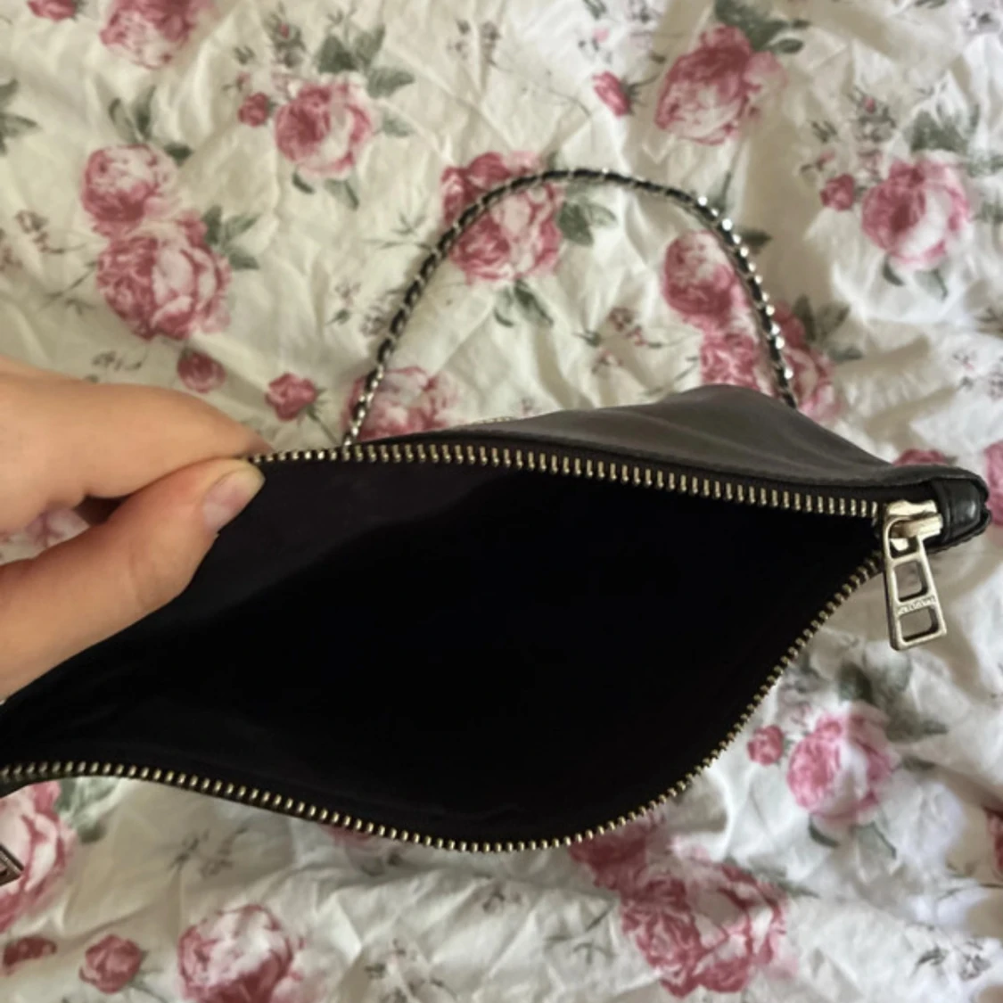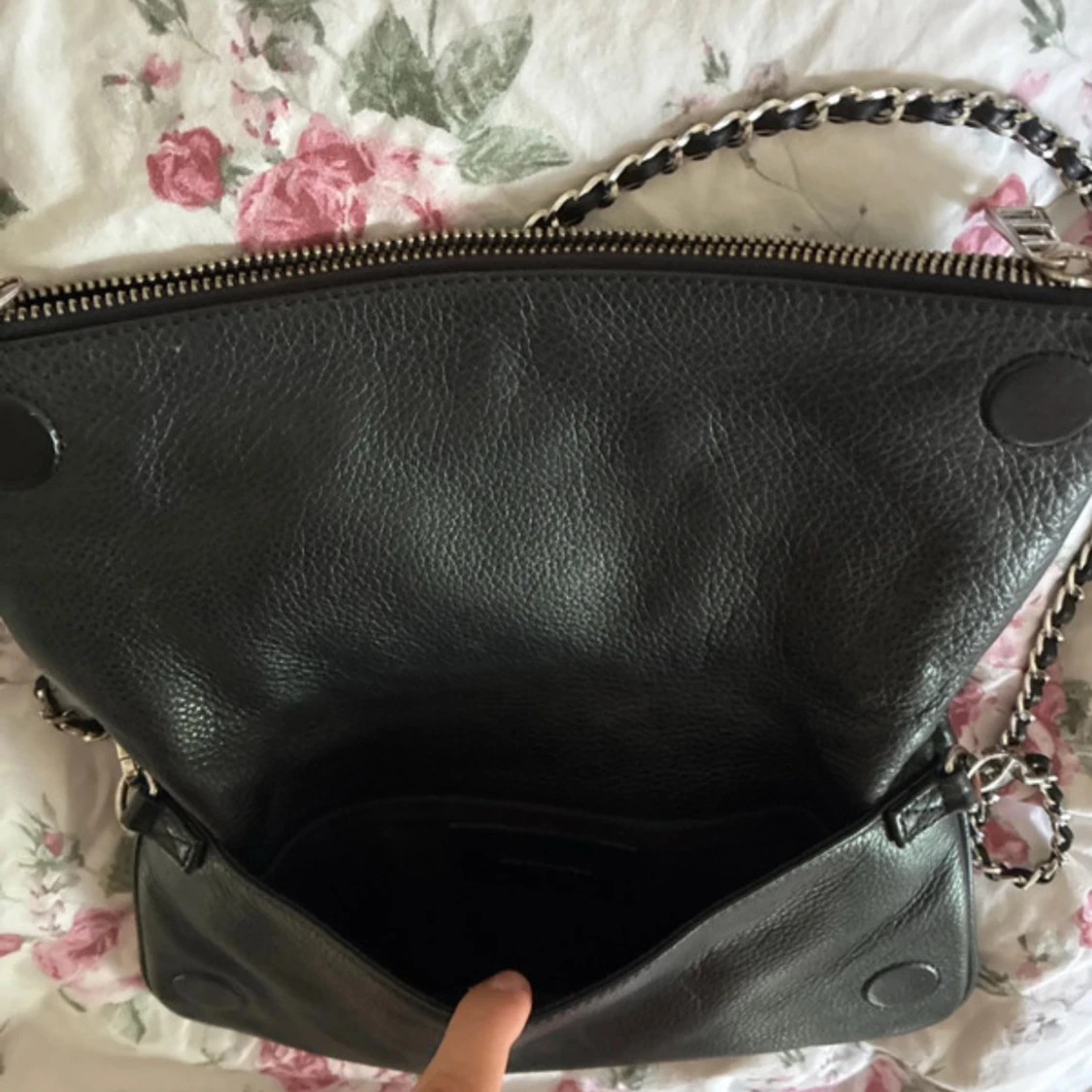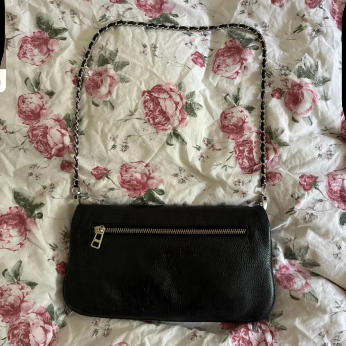 Snygg Zadig väska som är svart axelväska i skinn med silverfärgad kedjerem och dragkedja. Väskan har ett stilrent emblem framtill och praktiskt fack med dragkedja på baksidan. Perfekt storlek för det viktigaste och ger en cool vibe till din outfit.