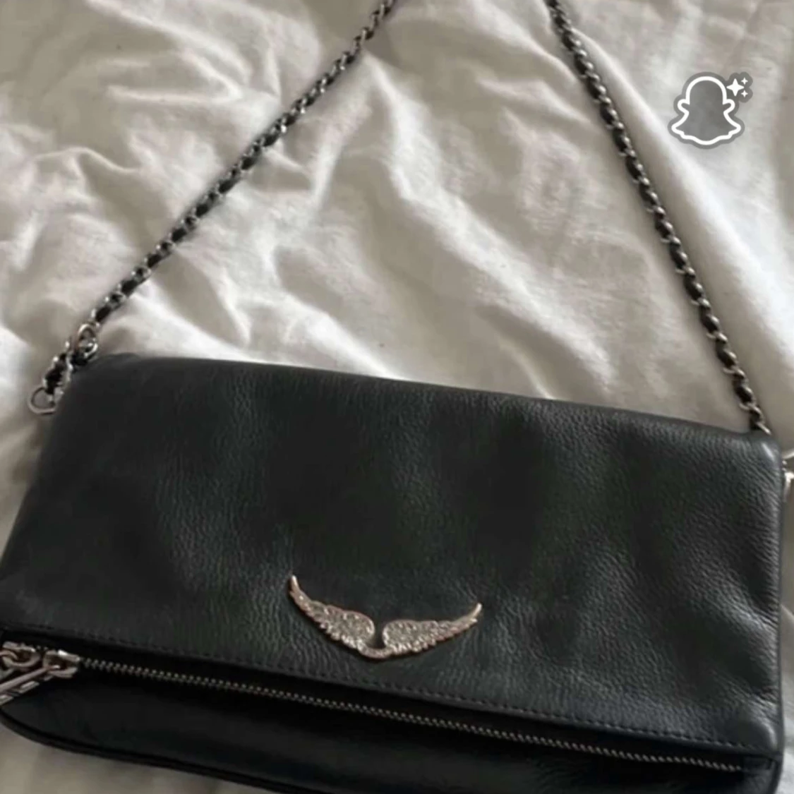 Snygg svart axelväska i skinn med silverfärgad kedjerem och dragkedja ifrån Zadig & Voltaire, fint skick. Nypris runt 4000