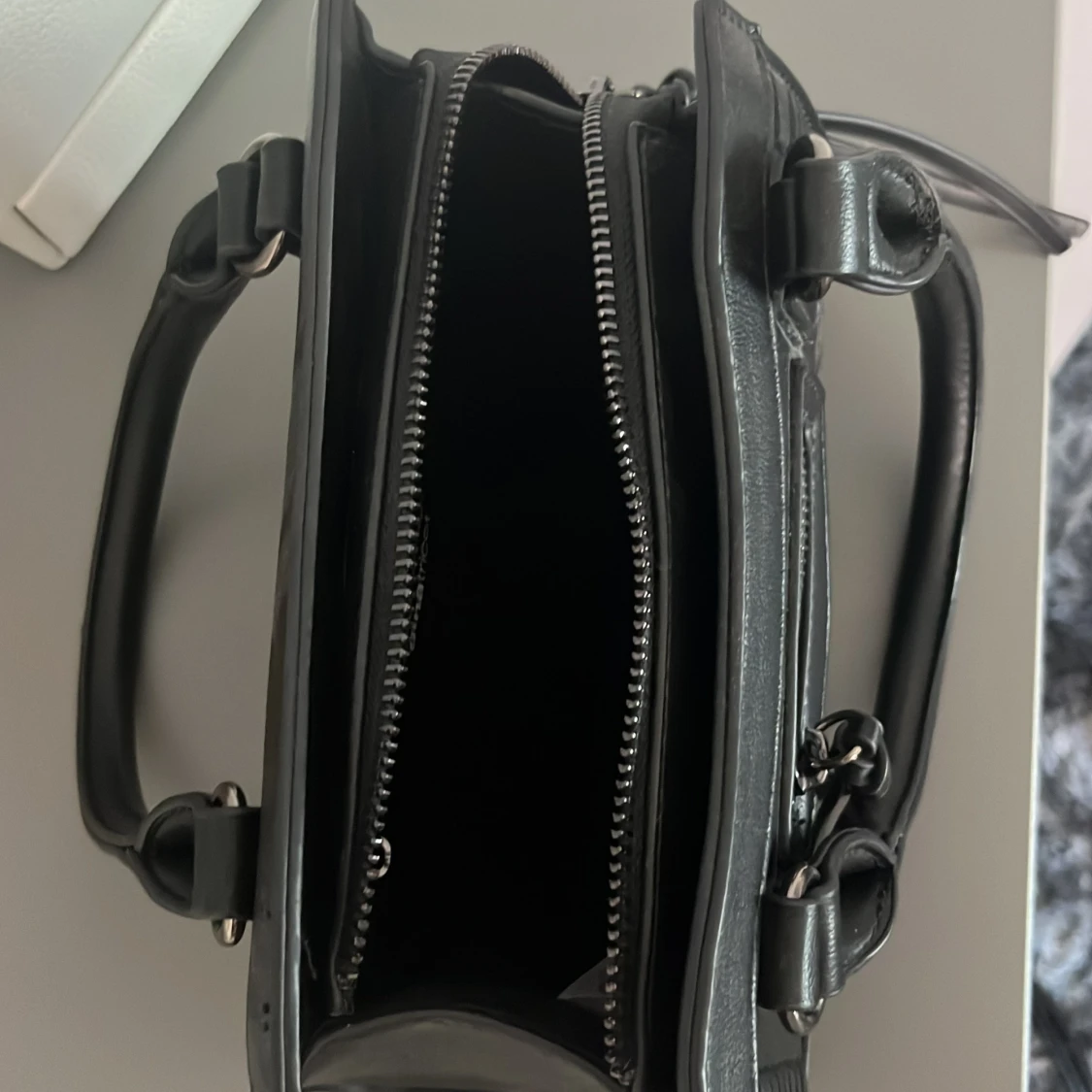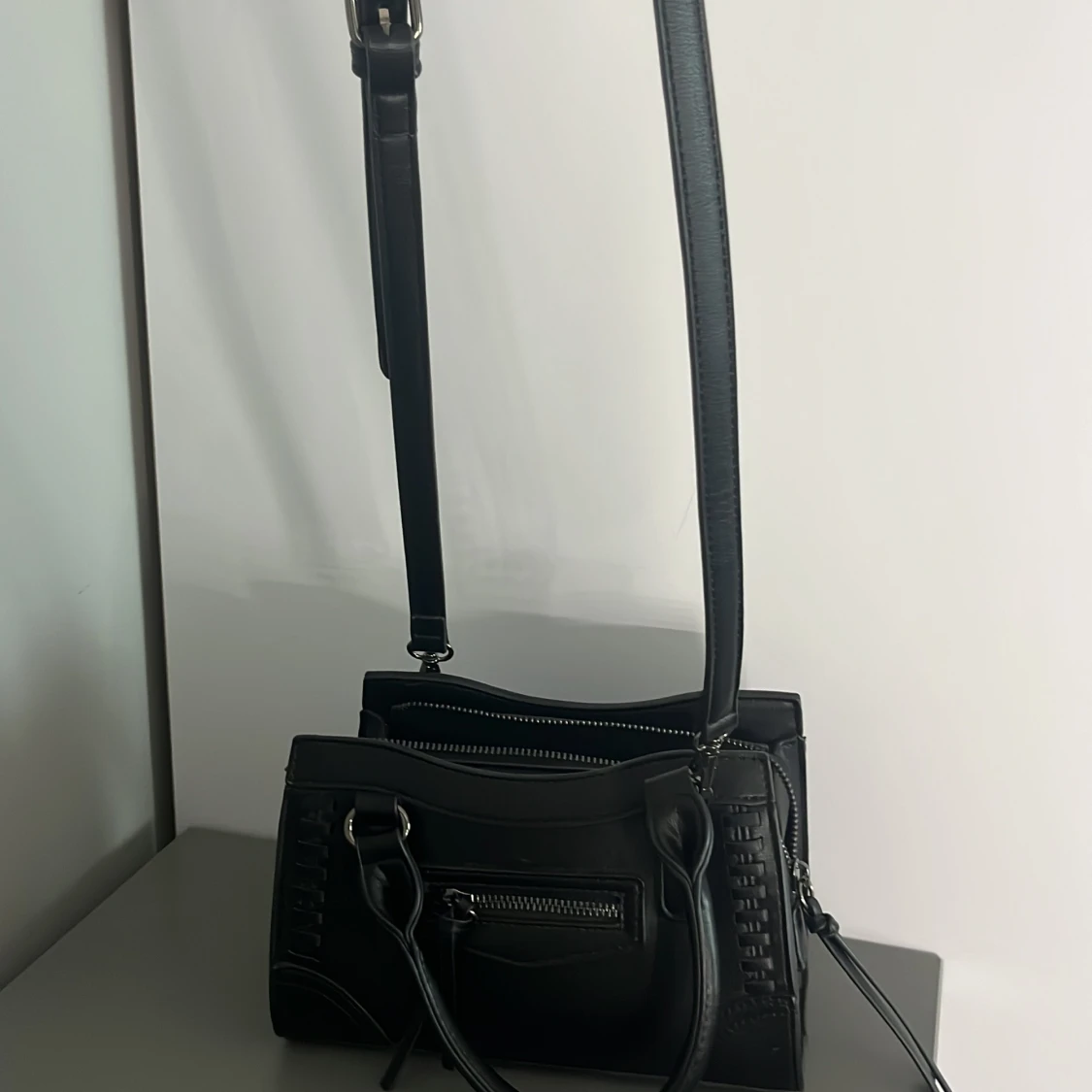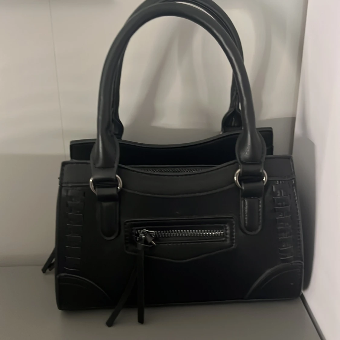 Snygg svart handväska. Väskan har detaljer med dekorativa sömmar och en dragkedjeficka framtill. Perfekt storlek för det viktigaste.