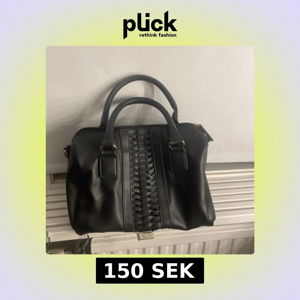 Snygg svart handväska från Atmosphere med flätad detalj på framsidan. Väskan har två handtag och en dragkedja upptill. Perfekt för att bära dina dagliga nödvändigheter med stil.