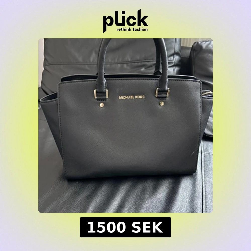 Elegant svart handväska från Michael Kors i skinn med guldfärgade detaljer. Väskan har två handtag och en dragkedja upptill. Insidan är rymlig med flera fack och en säkerhetskedja för nycklar. I väldigt bra skick ☺️pris kan diskuteras vid snabbt köp