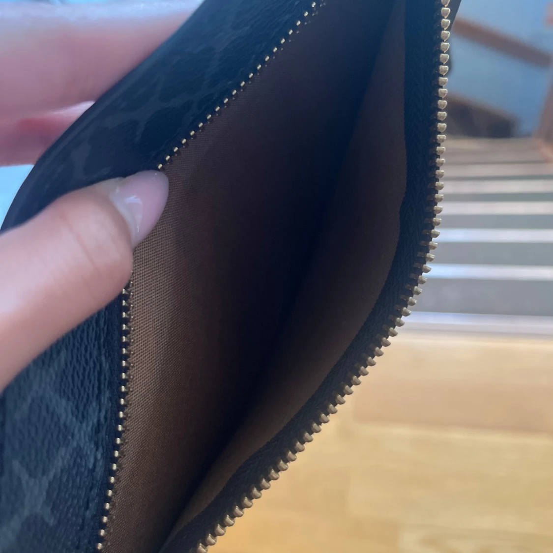 datorväska från By Malene Birger - Snygg svart datorväska från By Malene Birger med beige grafiskt mönster och guldfärgad dragkedja. Passar laptop och har ett innerfack med samma mönster. Tillverkad i slitstark syntet med mjukt beige foder. Perfekt för dig som vill ha en stilren och trendig look. Se näst sista bilden för liten skada inuti.