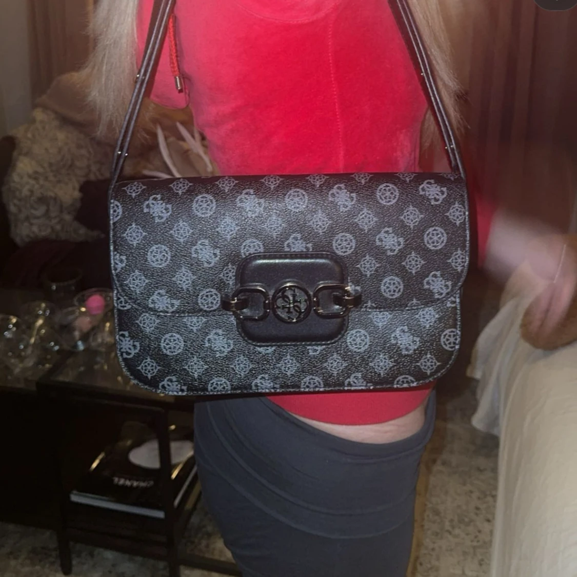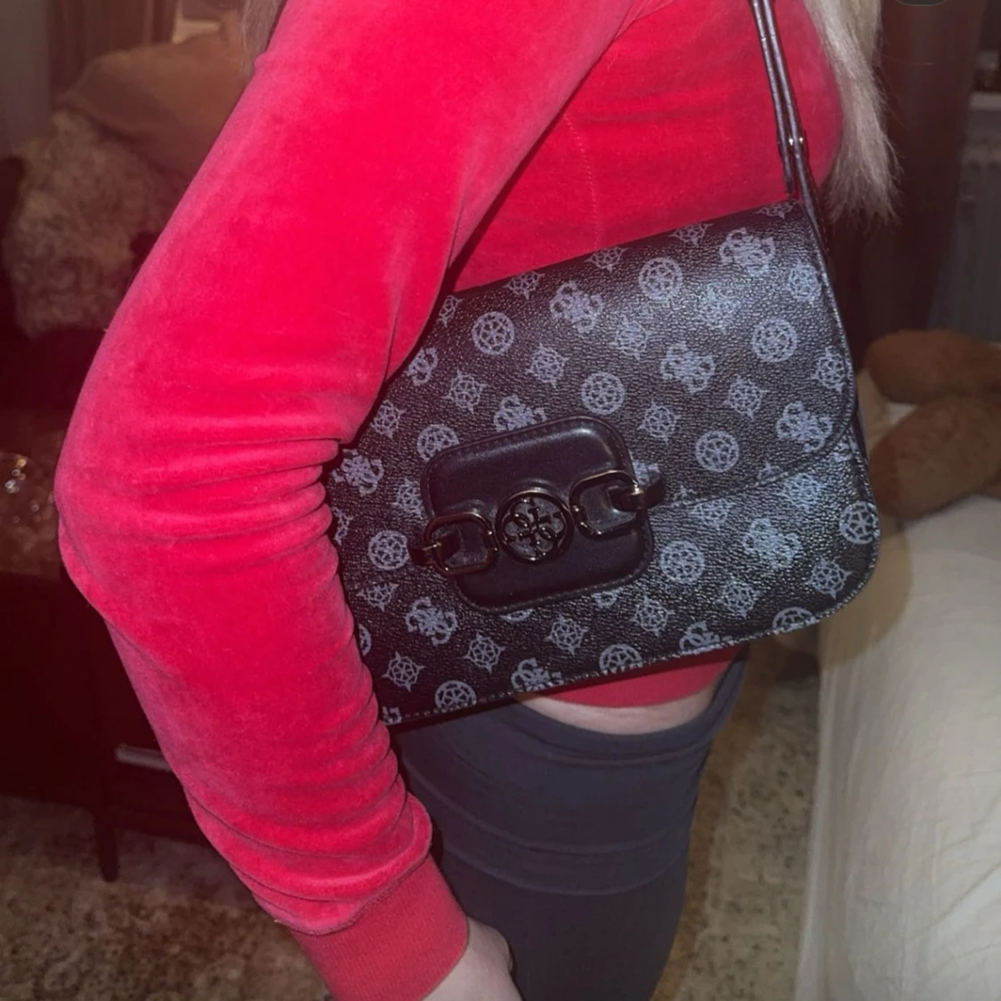 Svart mönstrad axelväska, GUESS