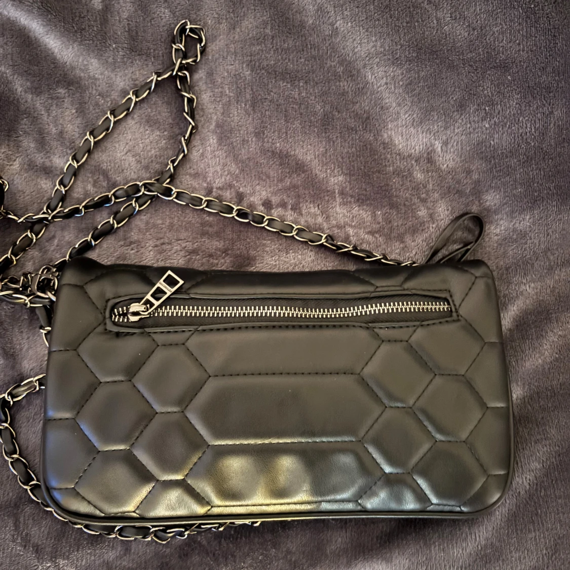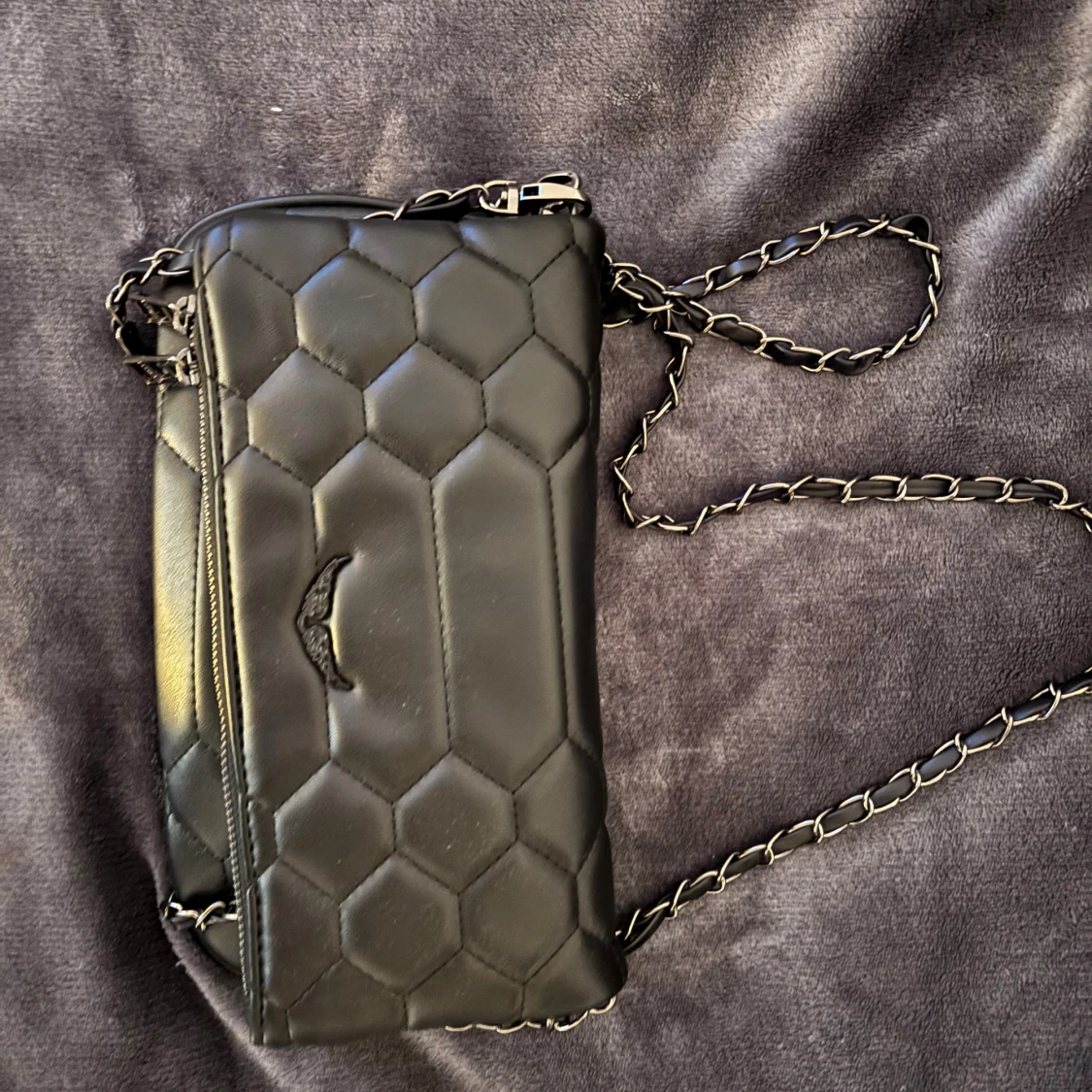Snygg svart axelväska från Zadig & Voltaire i quiltat skinn med kedjerem och coola detaljer. Väskan har dragkedja både fram och bak samt ett emblem framtill. Perfekt storlek för det viktigaste och ger en edgy vibe till din outfit.