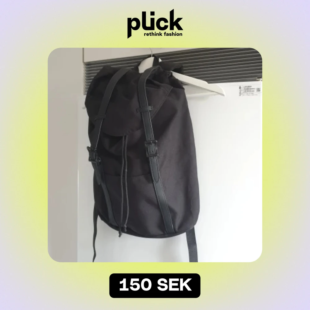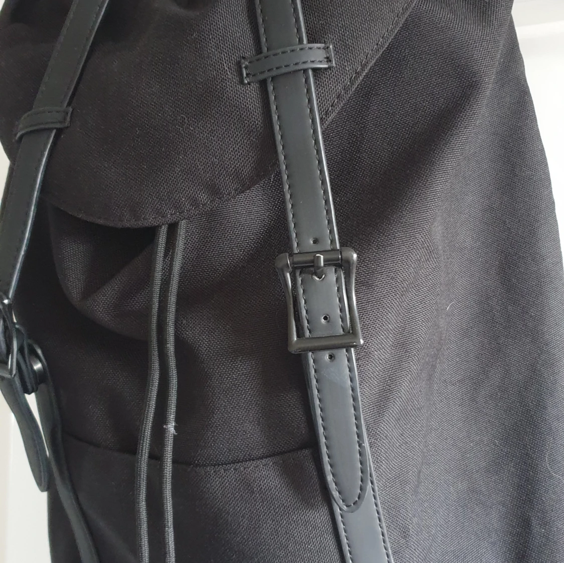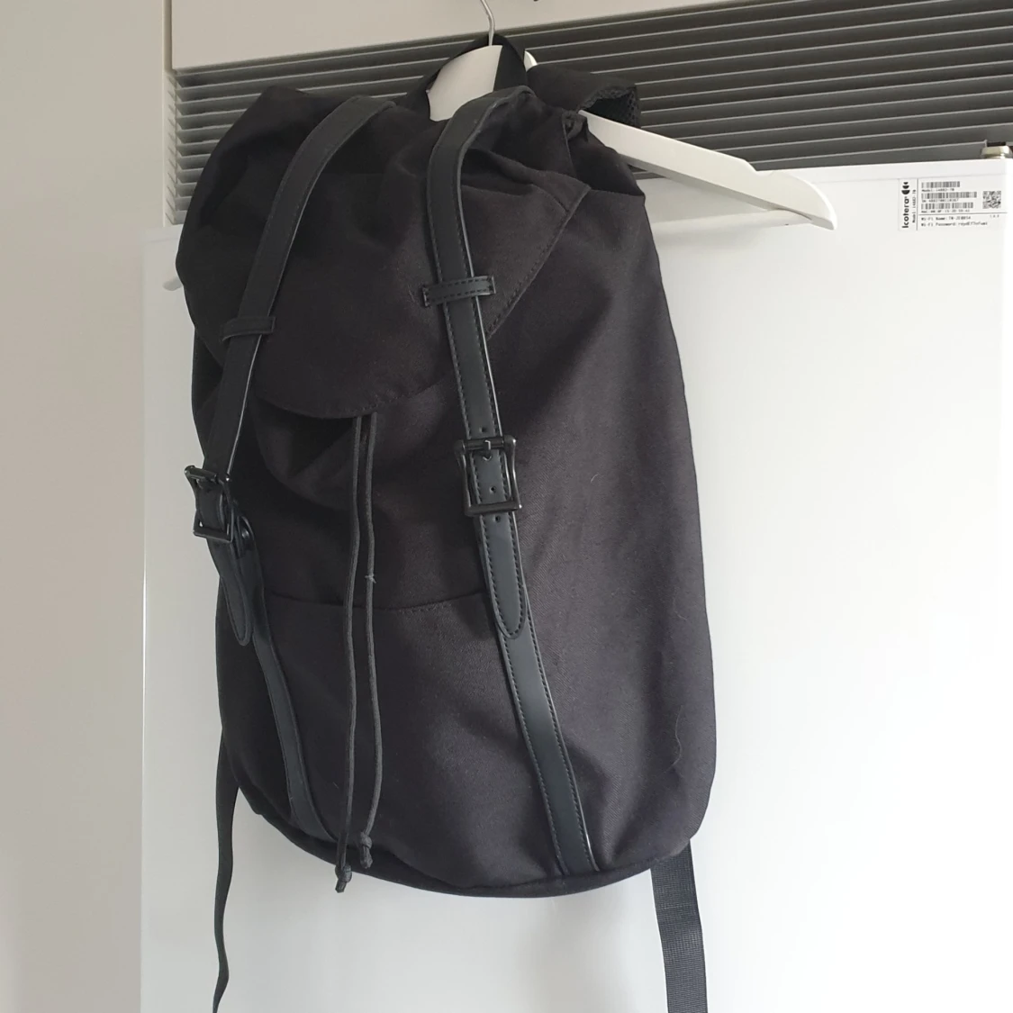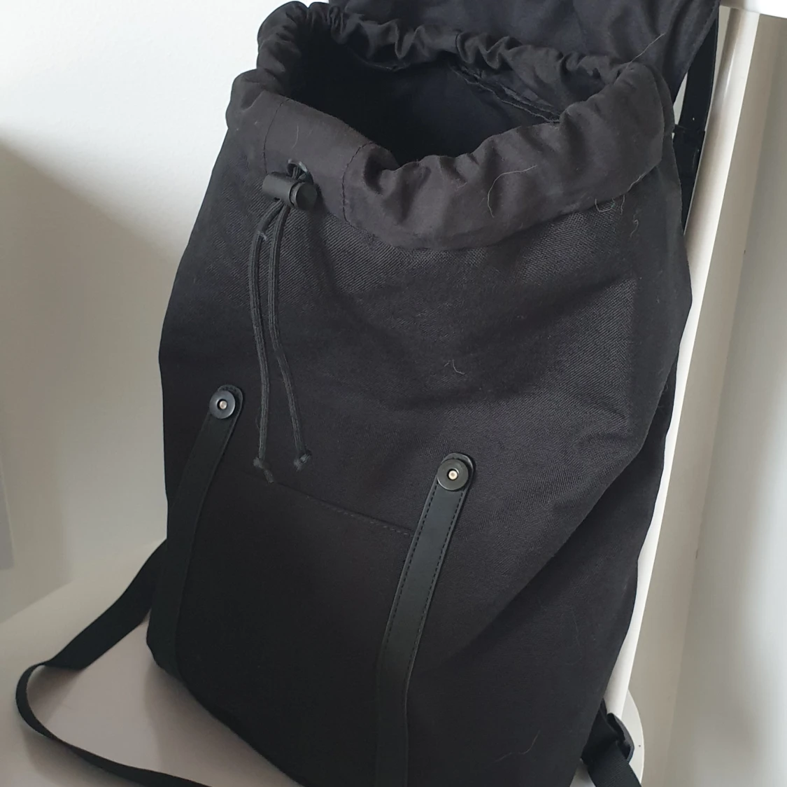 Säljer en stilren svart ryggsäck.. Den har justerbara remmar med spännen och en praktisk dragskoöppning. Perfekt för vardagsbruk eller utflykter! Nyskick. Märke: even&odd