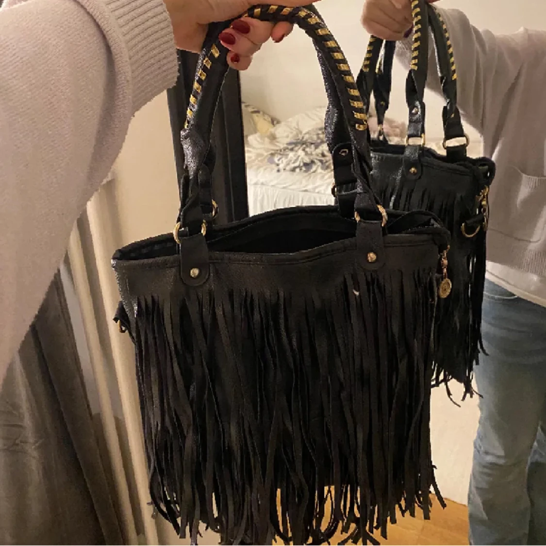 Fin fransväska med gulddetaljer!❤️