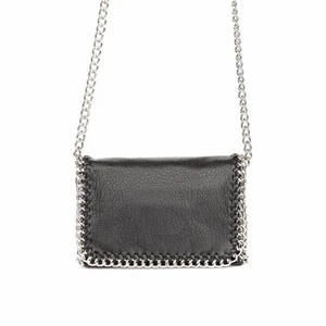 Svart axelväska Tiamo Priscilla - Säljer en svart axelväska från Tiamo med  silverfärgade kedjor som axelrem och detaljer längs kanterna. Väskan är gjord i syntetmaterial med en grynig läderlook, har dragkedja både på utsidan och insidan samt flera fack för småprylar.