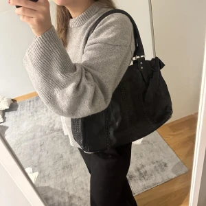 Svart vintage väska i äta skinn! Perfekt till vardags och så rymlig🤩