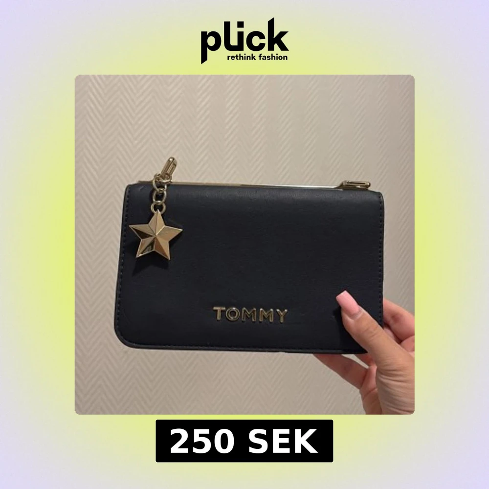 Snygg marinblå plånbok från Tommy med guldfärgad stjärnberlock och logga framtill. Plånboken har en stilren, rektangulär form och insida i ljus färg. Perfekt för dig som vill ha något både trendigt och praktiskt.