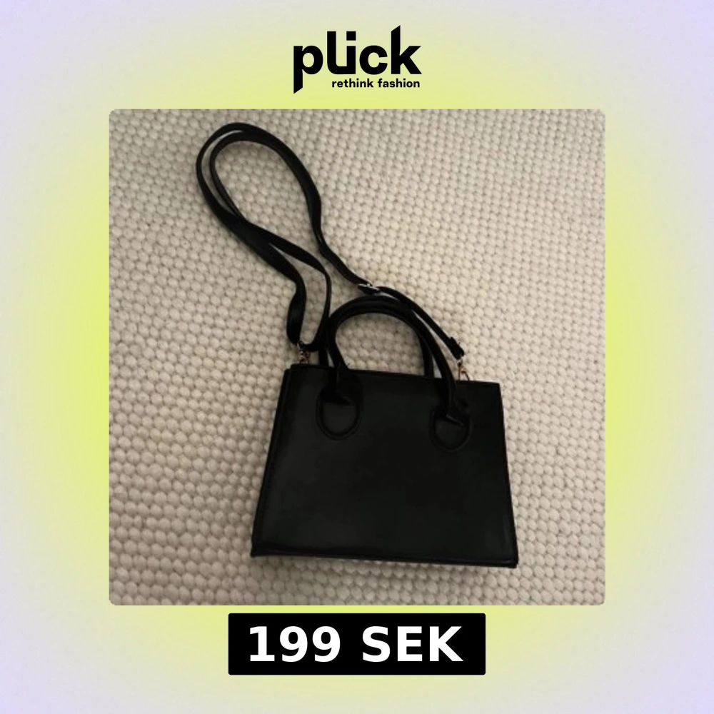 Snygg svart handväska med stilren, fyrkantig form och både handtag och lång axelrem. Perfekt storlek för det viktigaste och passar till många olika outfits.