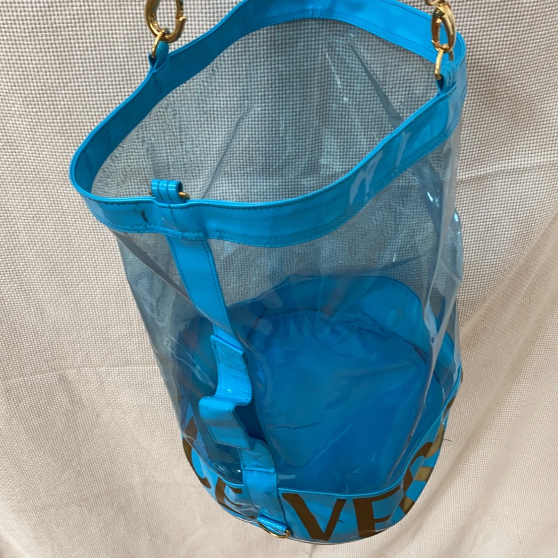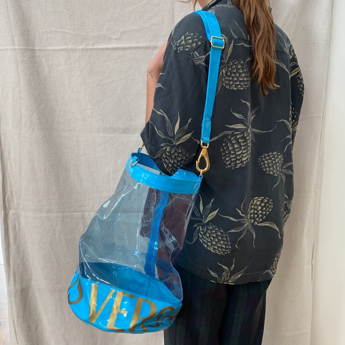 Supercoola väska i plast som passar perfekt till stranden eller på stan - den rymmer så mycket! Lång rem som kan justeras :) Frakt tillkommer <3