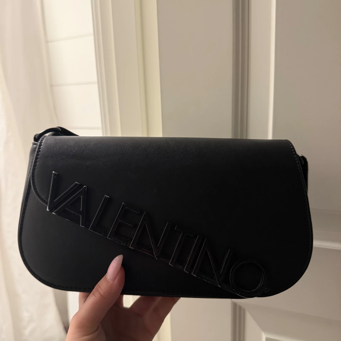 Snygg svart axelväska från Valentino med stilren design. Väskan har en elegant axelrem och är perfekt för att bära dina nödvändigheter. Den har en subtil logotypdetalj på framsidan som ger en exklusiv touch.