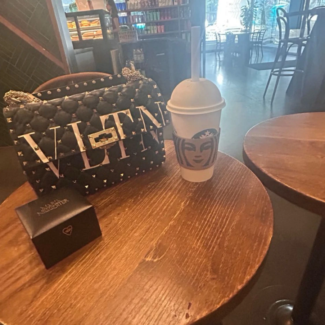 Säljer en svart quiltad handväska från Valentino med stora VLTN-bokstäver i vitt framtill. Väskan har guldfärgade nitar, kedjehandtag och ett snyggt spänne. Perfekt för dig som gillar statement pieces och lyxig design, pris går att diskutera vid snabb affär!