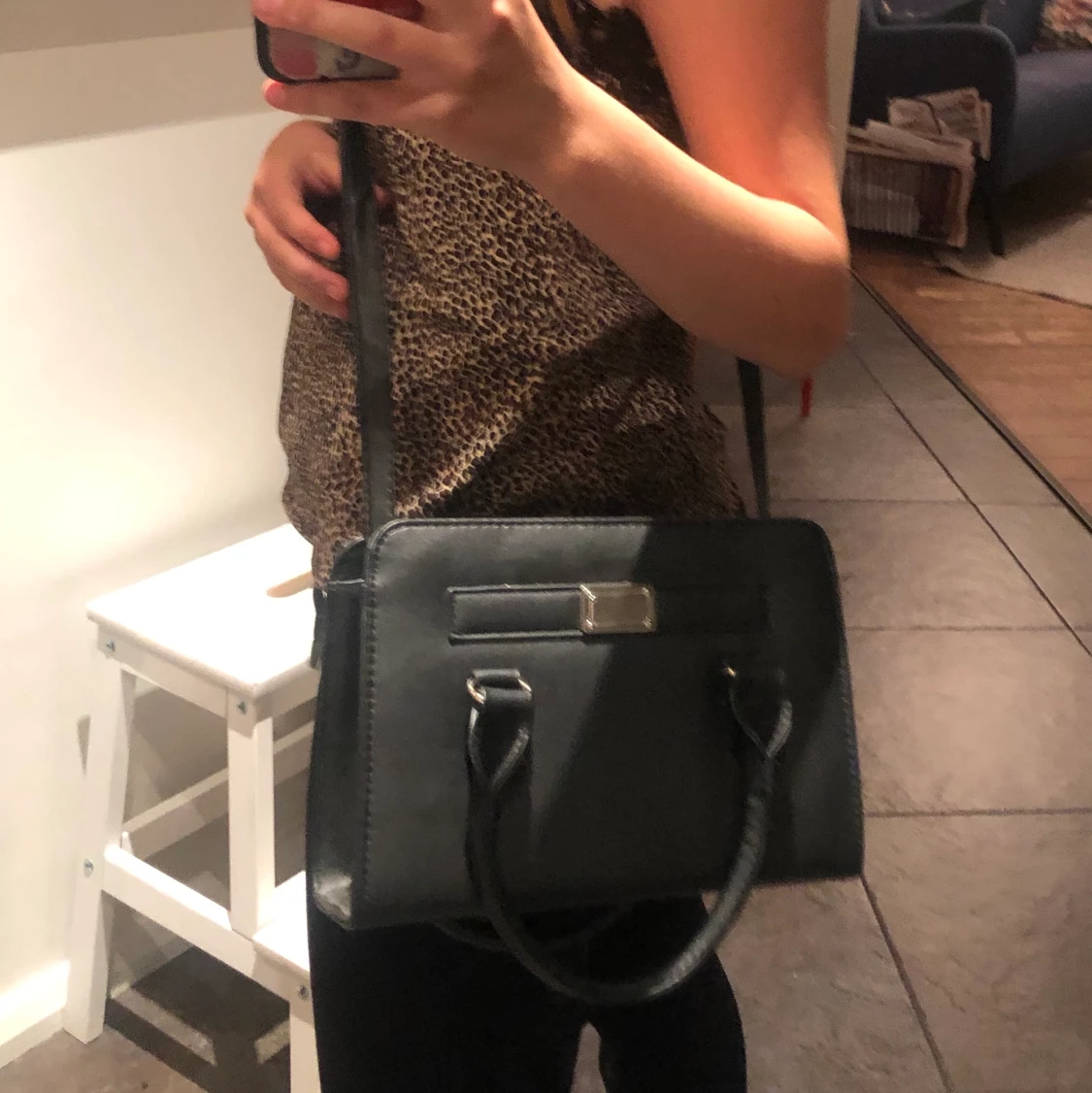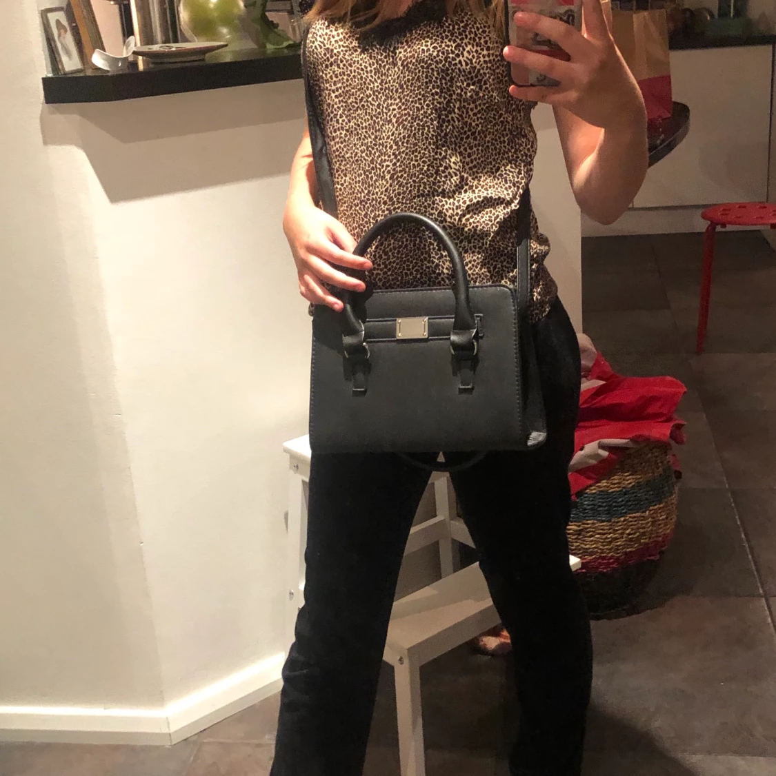 Man kan ha väskan runt axeln eller så kan man hålla i den. Använd ca 3 gånger. Läs min bio!